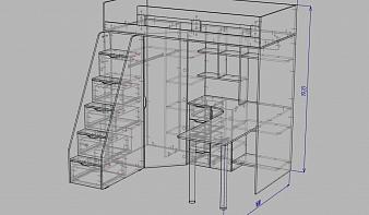 Кровать-чердак со столом и шкафом Дропс-2 BMS