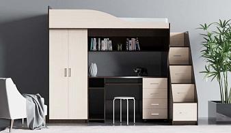 Детская кровать-чердак Миф 11.4 с полками BMS