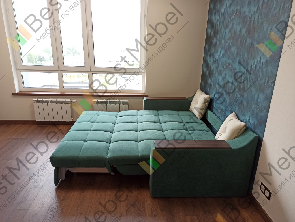 Всё не доходили руки сразу написать... Заказал месяц назад, изготовили примерно за неделю, привезли и доставили аккуратно и в срок. Немного поругались с грузчиками-водителями, т.к. хотели взять больше за подъём, но стоило им упомянуть о расценках на сайте - сразу согласились и уехали рассерженные. Всего привезли и подняли 2 части дивана - в одной был сам диван-аккордеон и подушки, в другой боковые подлокотники и фиксирующая их спинка.Затем сам собрал примерно за час, т.к. там правда простая конструкция оказалась, всё вставляется в пазы и закручивается гаечным ключом или даже плоскогубцами.К сожалению, пока так и не успел поспать на нём и оценить функционал, но есть пару нюансов о которых хочу рассказать и может стоит их даже доработать.Во-первых, он немного низковат - высота от пола вроде 40 см. Если бы добавить 3-4 см, то сидя человек ростом в +-170 см чувствовал себя на нём идеально, а так бедра не полностью лежат на поверхности дивана. То есть нужно вытягивать ноги дальше что бы полноценно положить их на поверхность.Во-вторых, если садиться достаточно близко к подлокотникам, то присутствует небольшой эффект проваливания в сторону подлокотника, как будто бы каркас под диваном немного меньше. (у меня размеры дивана полностью стандартные: 2030х920х1050)А так в целом пока доволен. Надеюсь не разочарует когда посплю на нём.