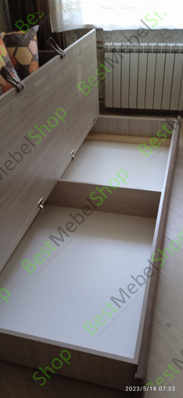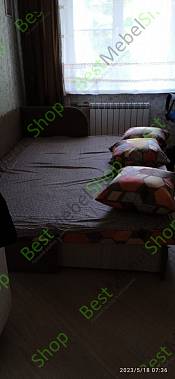 Очень понравилась софа. Сборка не понадобилась, просто вставила спинку и боковушку. Большой ящик для белья, софа в разложенном виде 155 см, жёсткость в меру. Надеюсь, послужит долго. Спасибо!