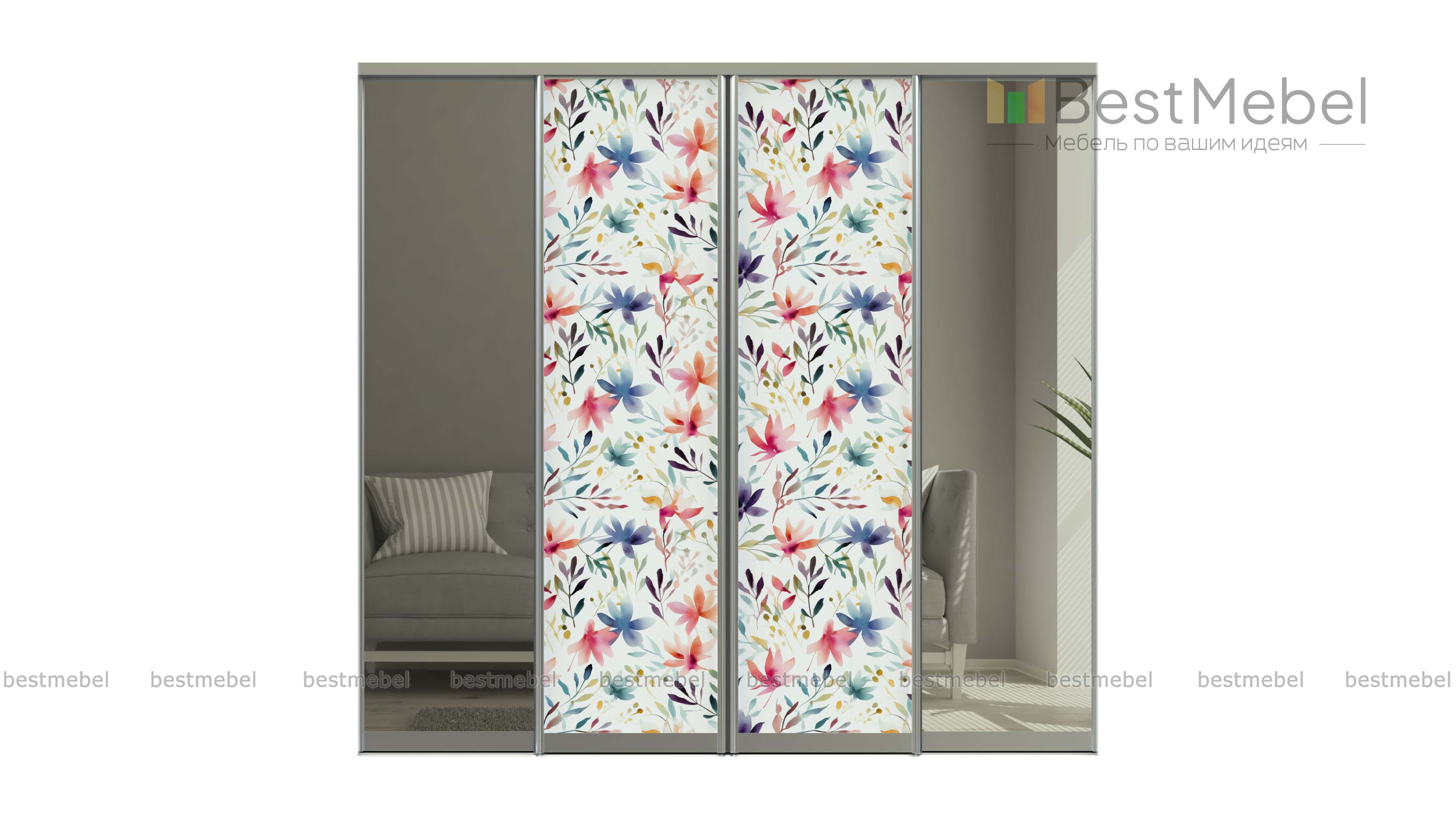 Двери-купе Андо 1 BMS составляют эффектную композицию для шкафов и гардеробных. Полотна с акварельной цветочной фотопечатью помогут создать легкое весеннее настроение, а ростовые зеркала сделают удобными примерку одежды и уход за собой. Серебристый алюминиевый профиль визуально объединит створки разного дизайна и придаст конструкции прочность и долговечность. Купить двери-купе Андо 1 BMS с выбором оптимальных размеров вы сможете на сайте нашего интернет-магазина.
