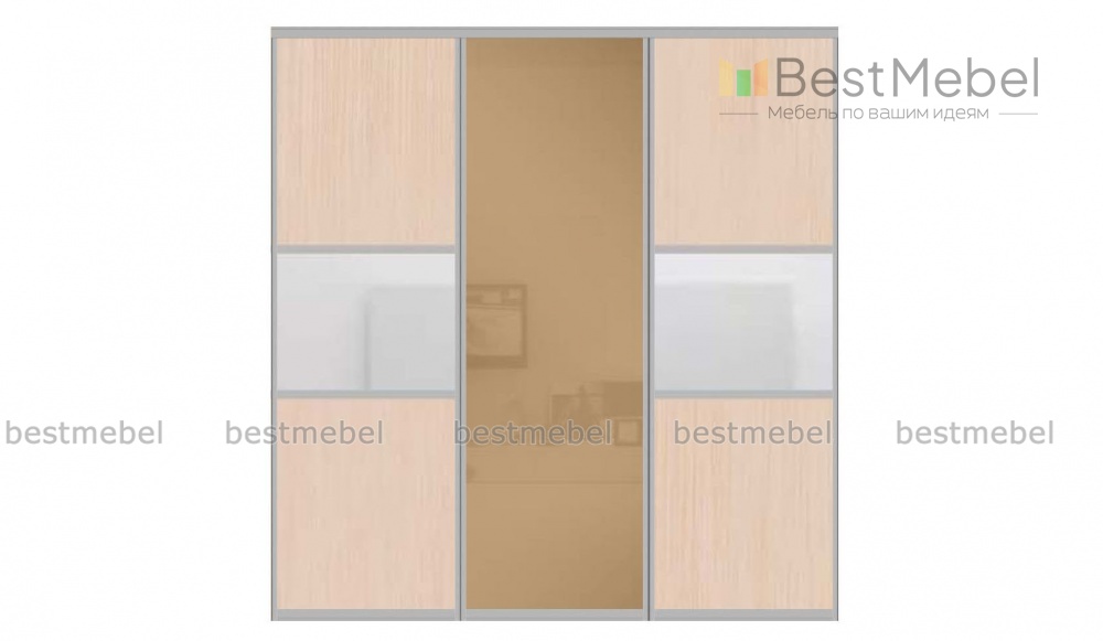 Двери-купе Дарти 2 BMS дополнят раздвижную систему шкафа или гардеробной. Готовая комбинация из трех створок отличается современным дизайном, гармонично сочетая стекло в пленке Оракал, зеркала и вставки в светлых древесных тонах. Фасад сделает комнату визуально светлее и сэкономит полезную площадь, не требуя пространства для открывания. Купить двери-купе Дарти 2 BMS с учетом нужных размеров вы сможете в нашем интернет-магазине.
