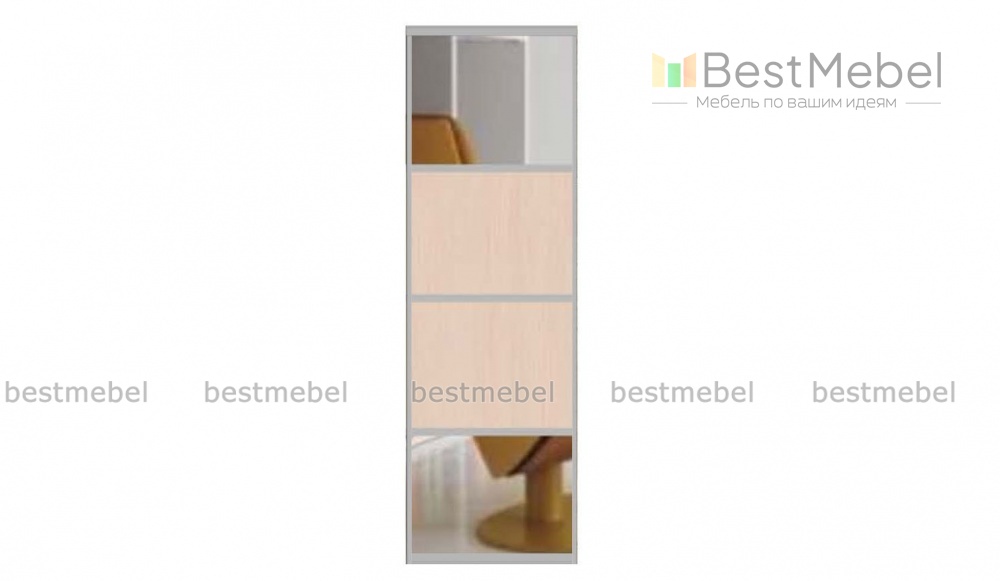 Двери-купе Лира 5 BMS помогут вам оборудовать гардеробную или собрать шкаф. Комбинированные створки выполнены в сочетании зеркальных вставок и полотна ЛДСП светлого древесного оттенка с серебристым профилем. Благодаря отражающим свет поверхностям помещение будет выглядеть просторнее и светлее, а износостойкость материалов станет гарантией долговечности. Купить двери-купе Лира 5 BMS для домашнего или офисного интерьера вы сможете в нашем интернет-магазине по доступной цене.