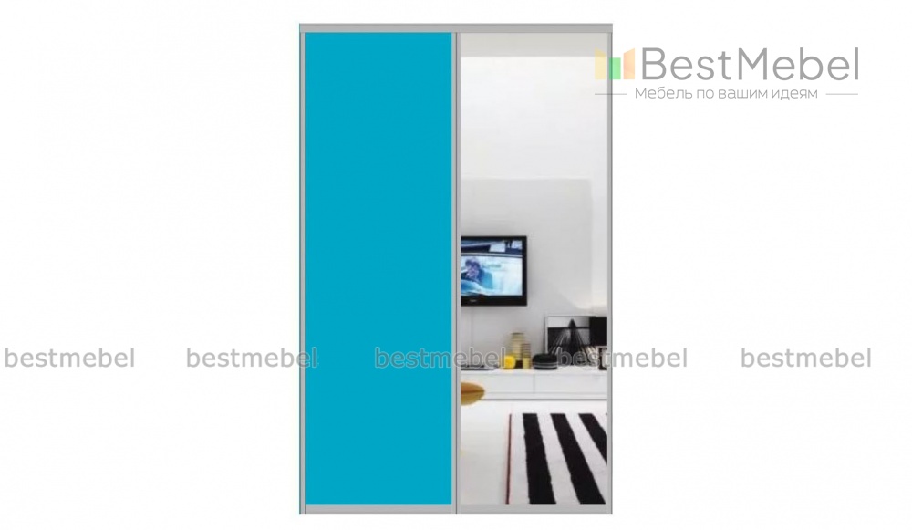 Двери-купе Море 1 BMS представляют собой готовый фасад для шкафа или гардеробной. В оформлении раздвижных створок скомбинированы полностью зеркальное полотно и покрытое пленкой Оракал светло-голубого цвета. Прочность конструкции придает рама из профиля серебристого оттенка, а износостойкие поверхности сохранят эстетичный вид на протяжении всего срока службы. Купить двери-купе Море 1 BMS для современной молодежной комнаты или спальни приглашаем в наш интернет-магазин.