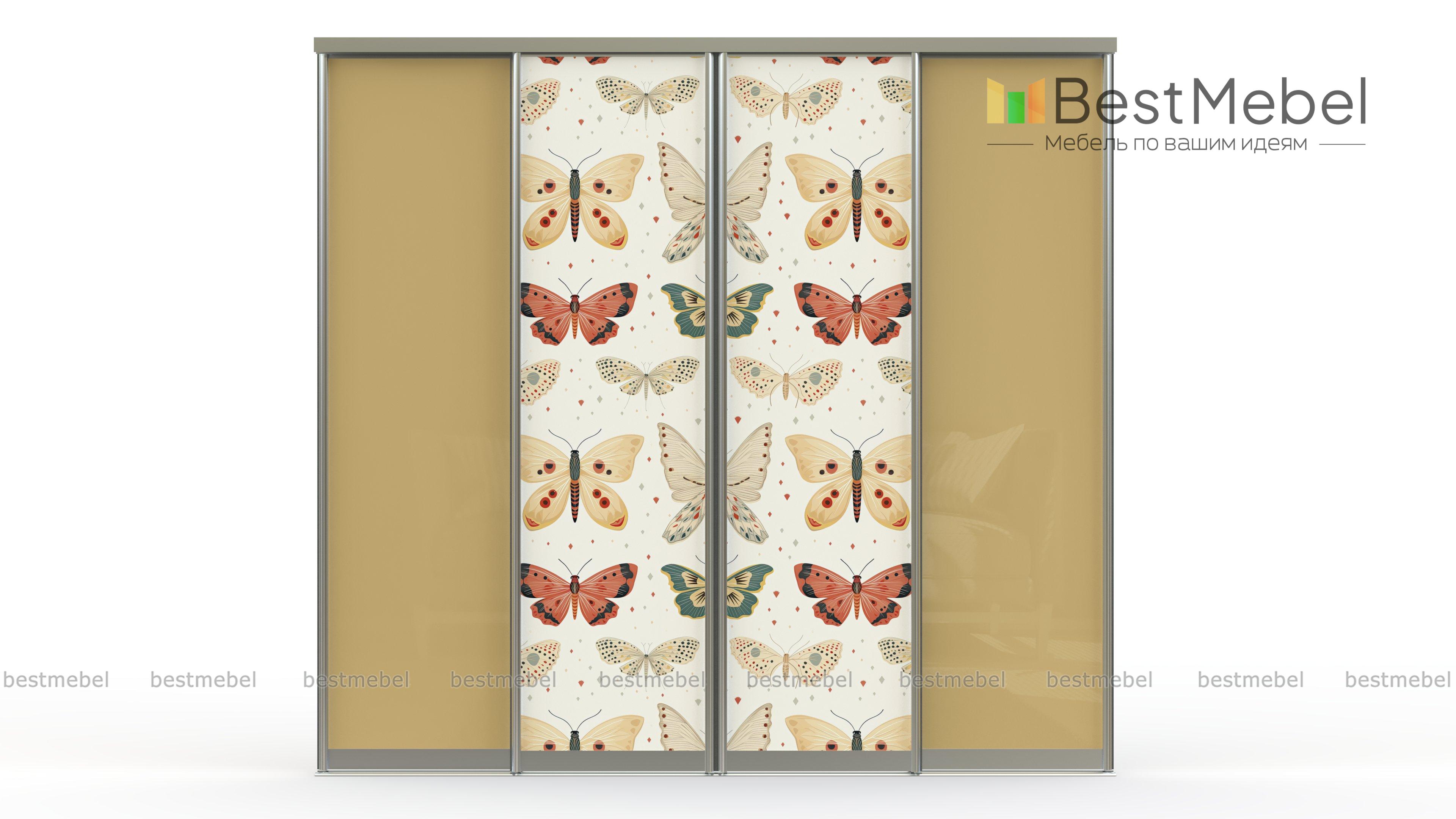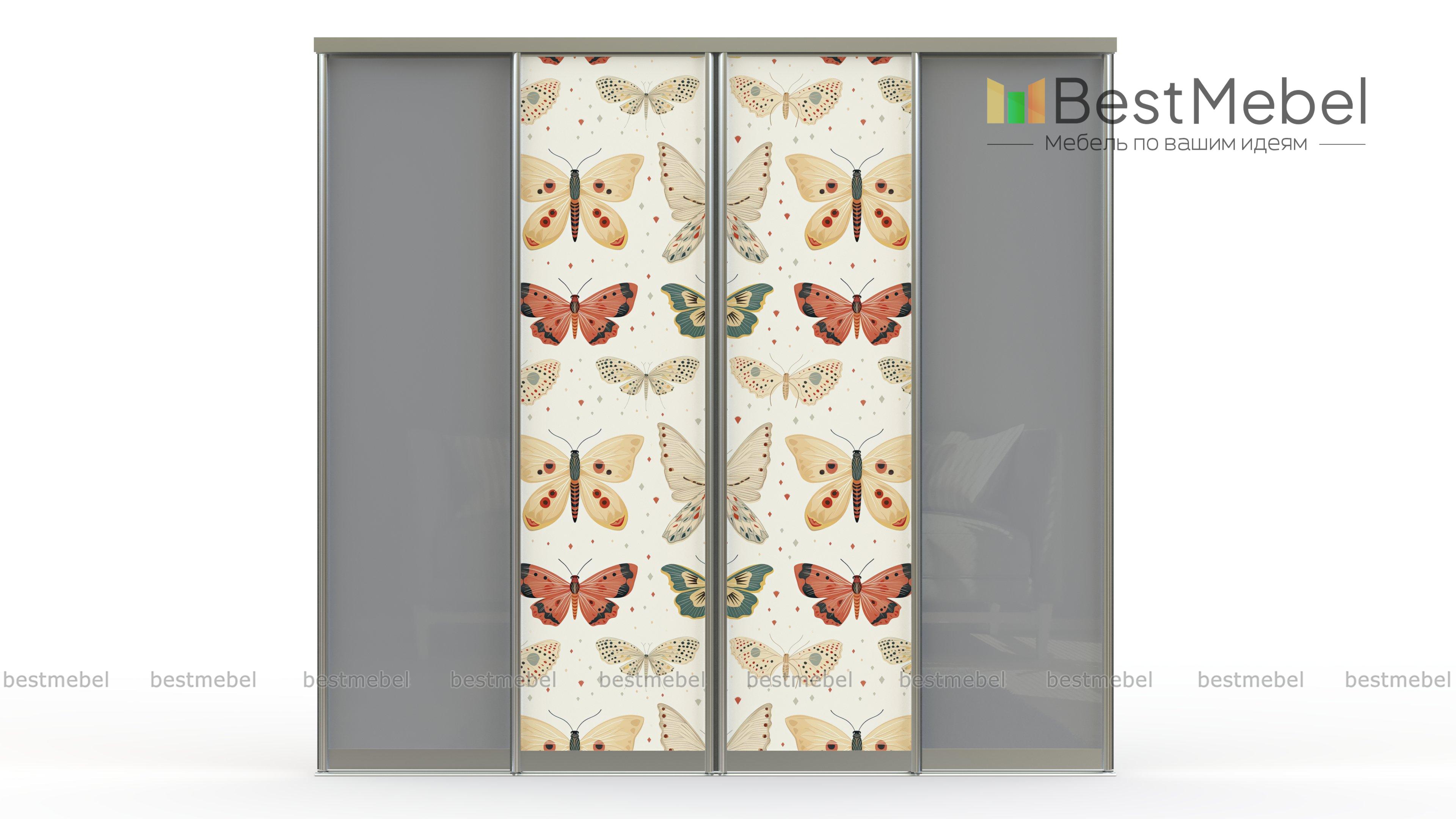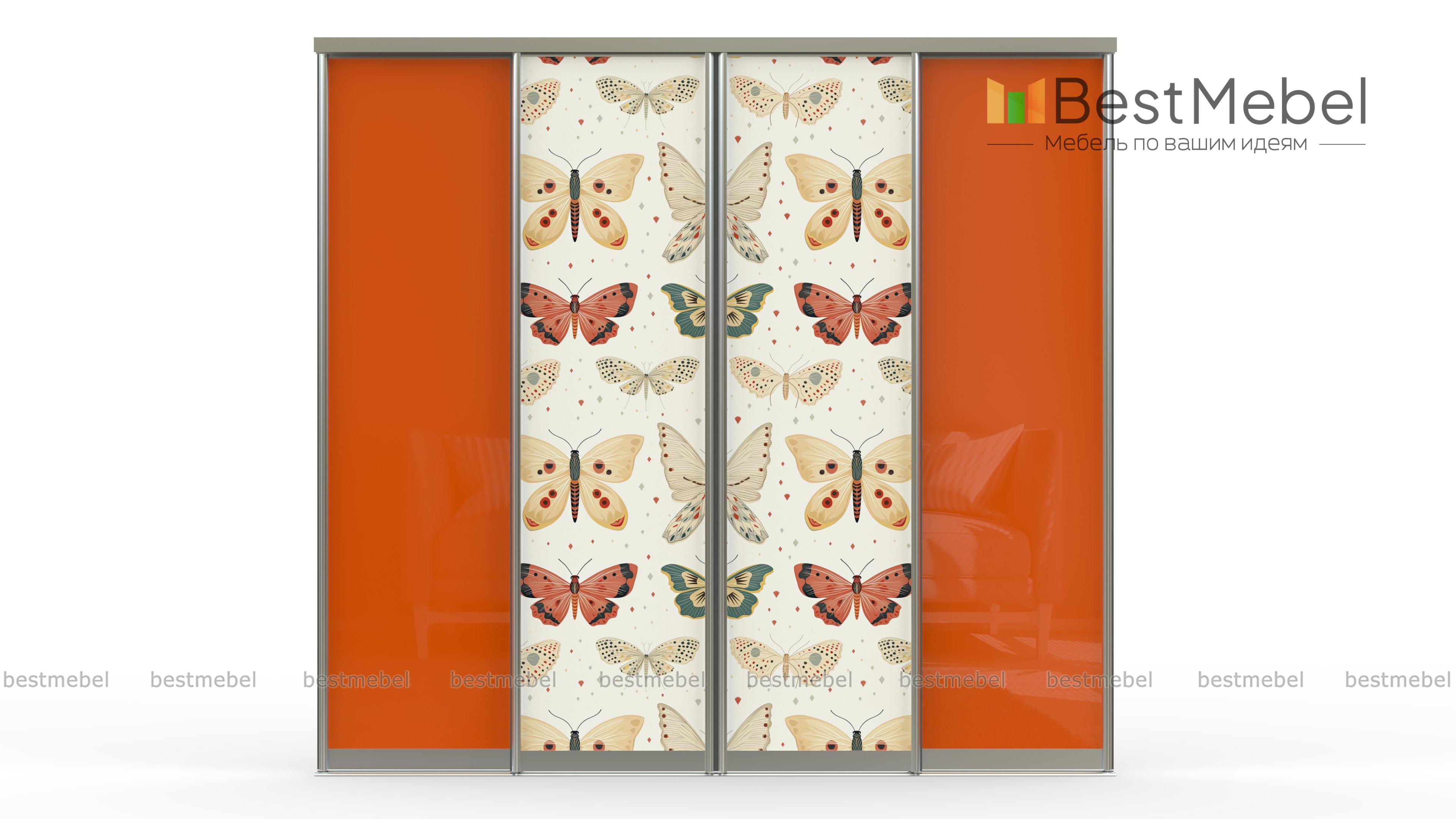 Двери-купе Стайн 1 BMS объединены в готовое интерьерное решение для спальни, гостиной или прихожей. Две двери с популярным принтом «бабочки» и две однотонные глянцевые выполнены в спокойной, приятной глазу палитре. Полотна из стекла, покрытого пленкой Оракал, и ламинированной плиты имеют прочные и легкие каркасы из алюминиевого профиля. Купить двери-купе Стайн 1 BMS приглашаем в наш интернет-магазин, самостоятельно подобрав нужные цвета и размеры.
