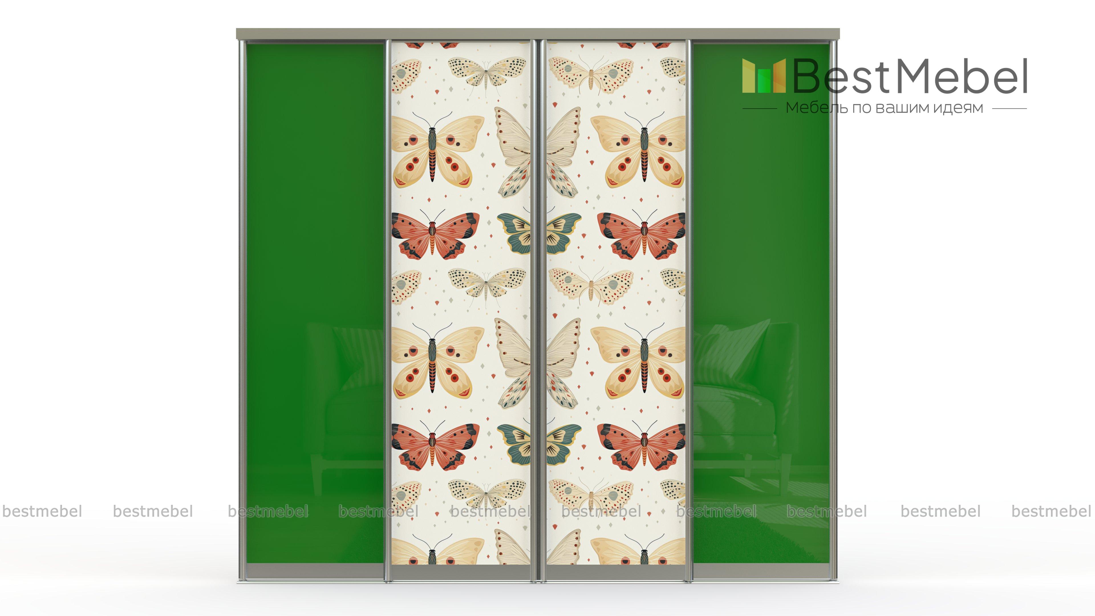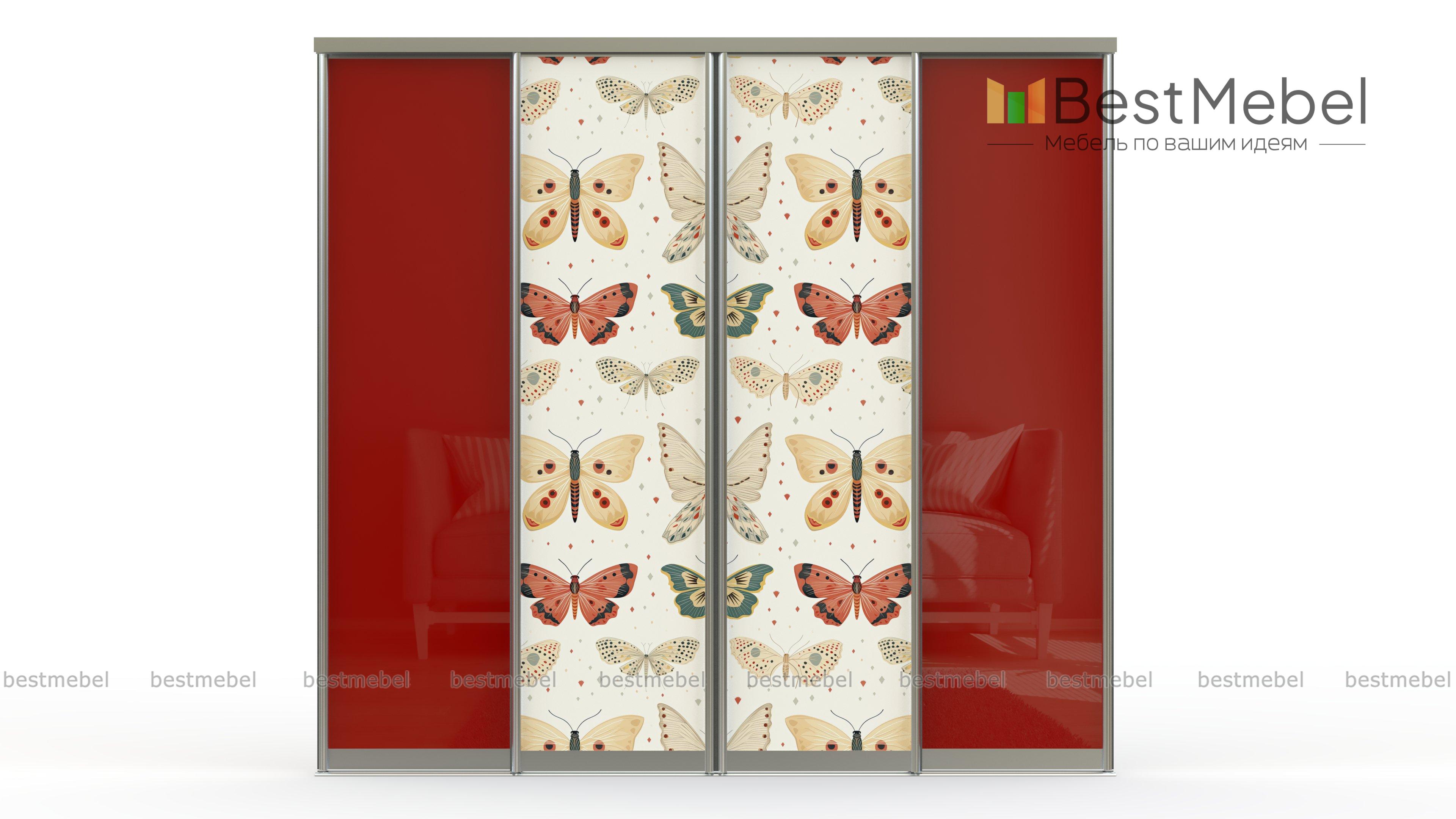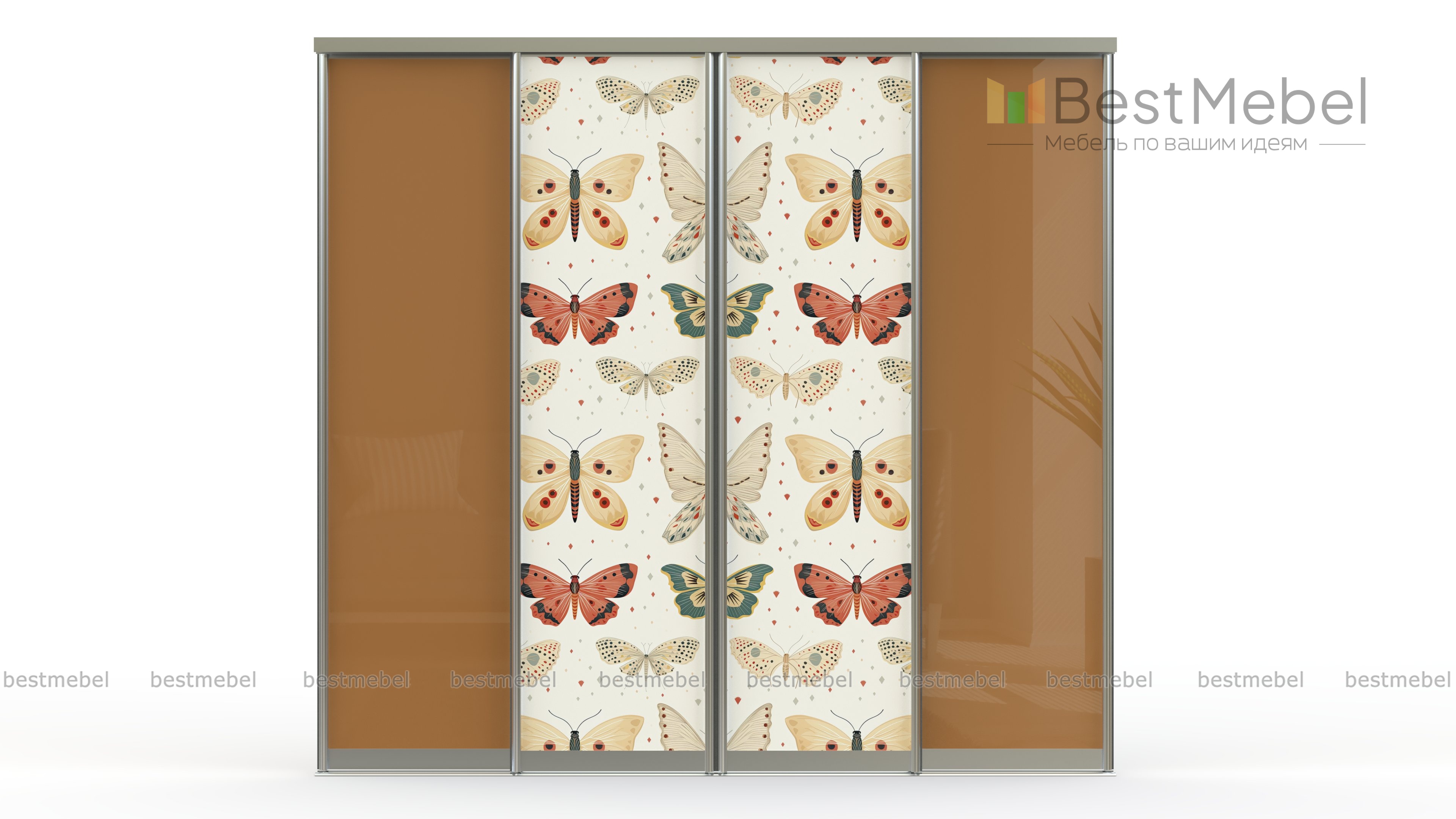 Двери-купе Стайн 1 BMS объединены в готовое интерьерное решение для спальни, гостиной или прихожей. Две двери с популярным принтом «бабочки» и две однотонные глянцевые выполнены в спокойной, приятной глазу палитре. Полотна из стекла, покрытого пленкой Оракал, и ламинированной плиты имеют прочные и легкие каркасы из алюминиевого профиля. Купить двери-купе Стайн 1 BMS приглашаем в наш интернет-магазин, самостоятельно подобрав нужные цвета и размеры.