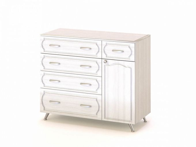 Комод Александр-4.1 BMS вместителен, но не выглядит громоздко благодаря высоким скошенным опорам. Комбинированная модель оборудована одним малым и четырьмя большими выдвижными ящиками, распашным отделением с полкой и просторной столешницей. Вы сможете удобно хранить в одном месте постельное белье, аксессуары и бытовые мелочи, гармонично вписав комод с фрезерованными фасадами в классический спальный интерьер. Купить комод Александр-4.1 BMS выгодно приглашаем к нам в интернет-магазин.