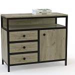 Комод Диана 10 BMS сочетает простоту и функциональность с характерным лофтовым дизайном. Выполненная из износостойкой ламинированной плиты с имитацией древесного массива, модель располагается на прочном металлокаркасе с высокими опорами. Три выдвижных ящика, распашное отделение с полками и просторная открытая секция под столешницей обеспечат удобное хранение вещам. Купить комод Диана 10 BMS вы сможете на сайте нашего интернет-магазина, подобрав фурнитуру и цвет по каталогу.