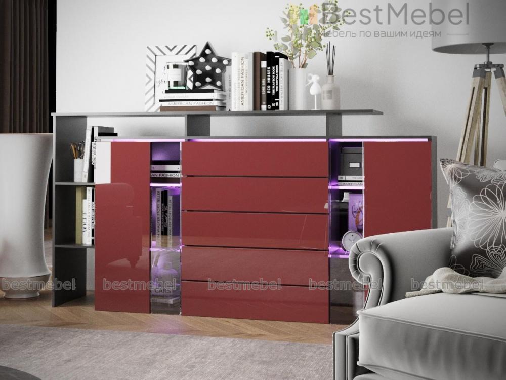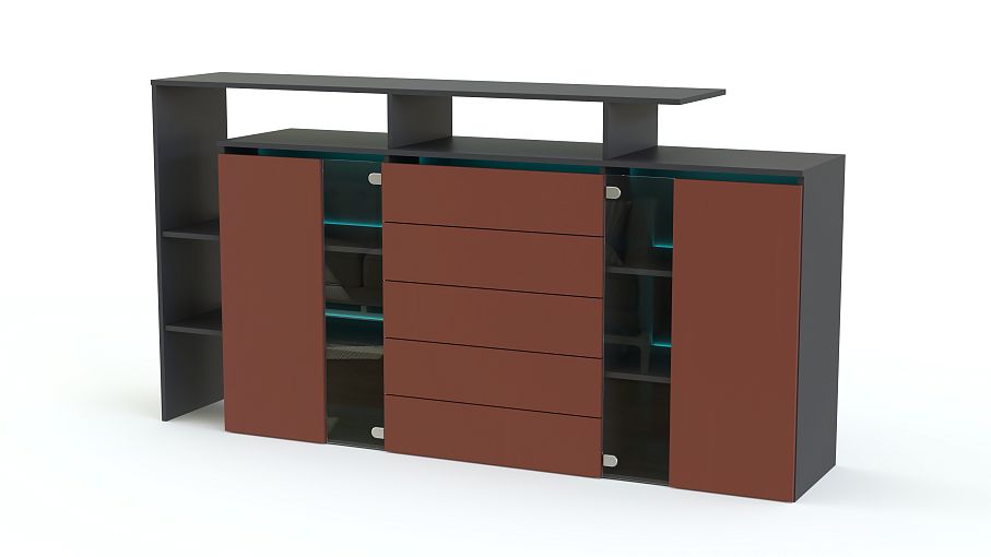 Стильная крупногабаритная модель Элит 74 BMS привлекает внимание не только оригинальным дизайном и смелой контрастной расцветкой, но и редкой функциональностью. Комод оснащен для хранения вещей не только просторными выдвижными отделениями, но и распашными. Легкость конструкции придают стеклянные дверцы и полностью открытые полки в боковой и верхней части. Матовые поверхности фасадов делают помещение зрительно больше. Отлично дополнит интерьер современной гостиной.