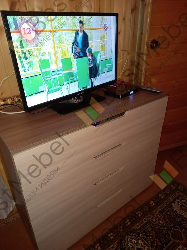 Небольшой, но вместительный комод, выполненный в двух цветах, прекрасно подошел к интерьеру нашей дачной комнаты. Комод был сделан по нашим параметрам с выпилом под плинтус. Качеством мебели остались довольны. Благодарим магазин за оперативную доставку в удобное для нас время.