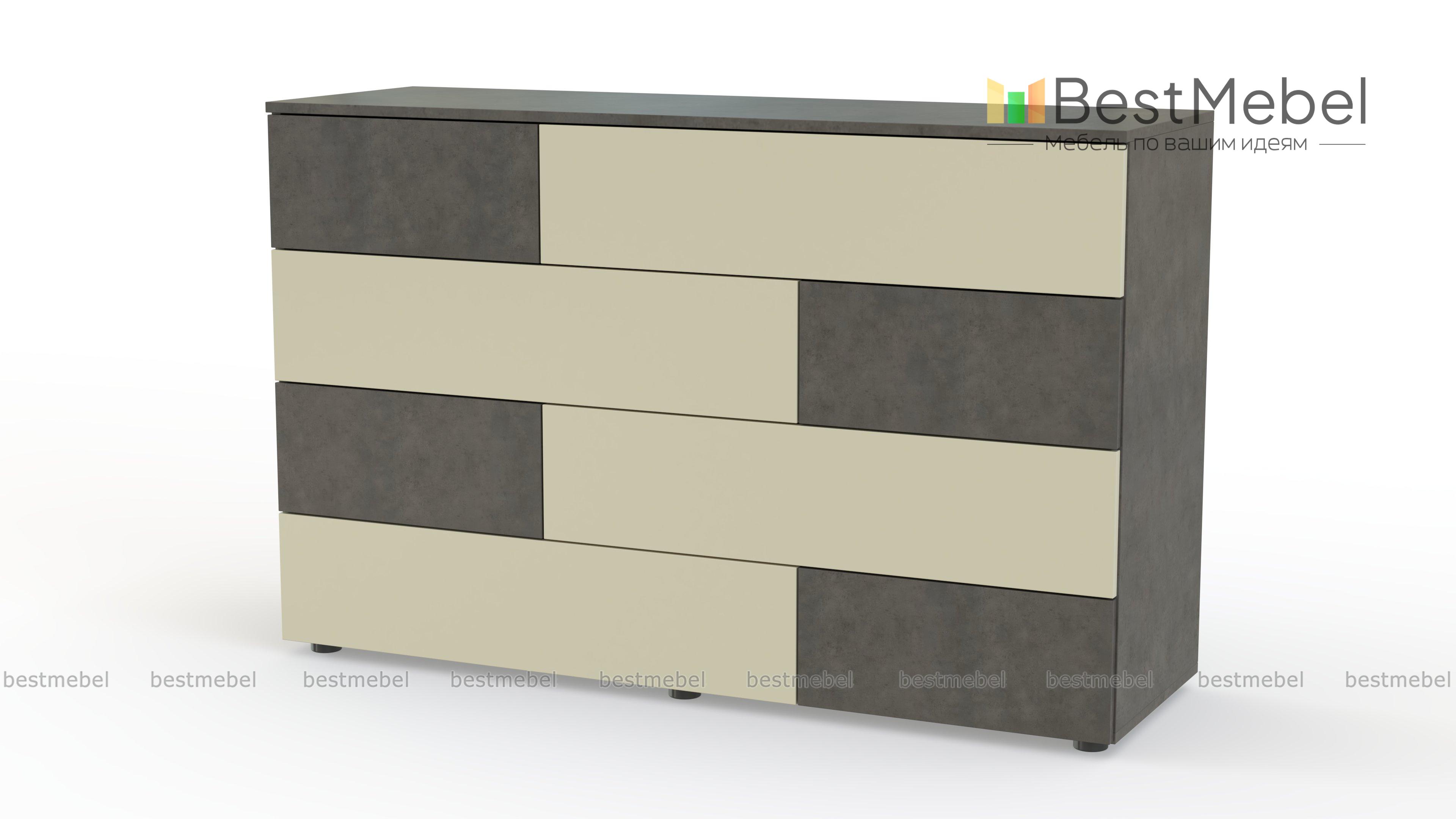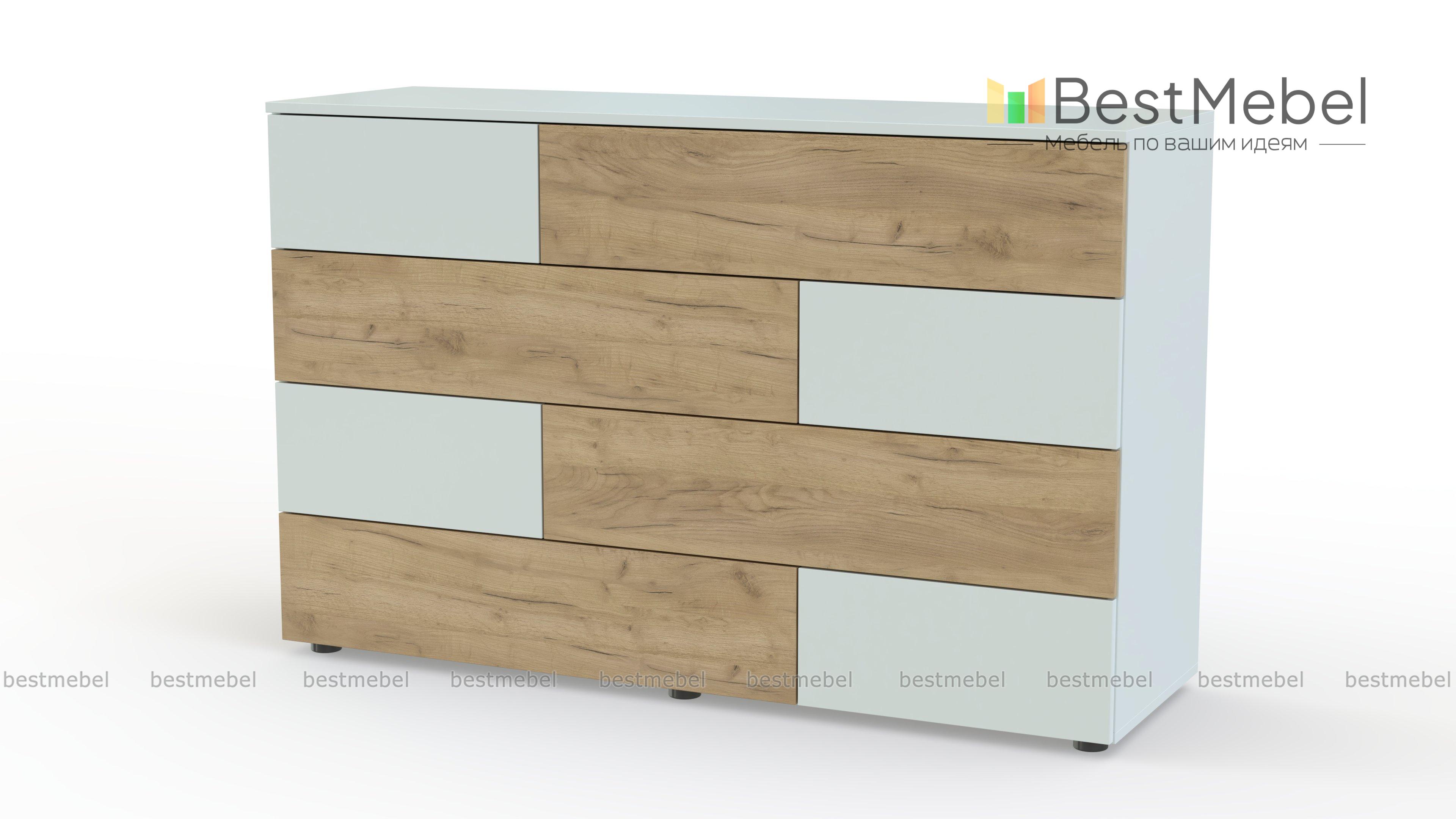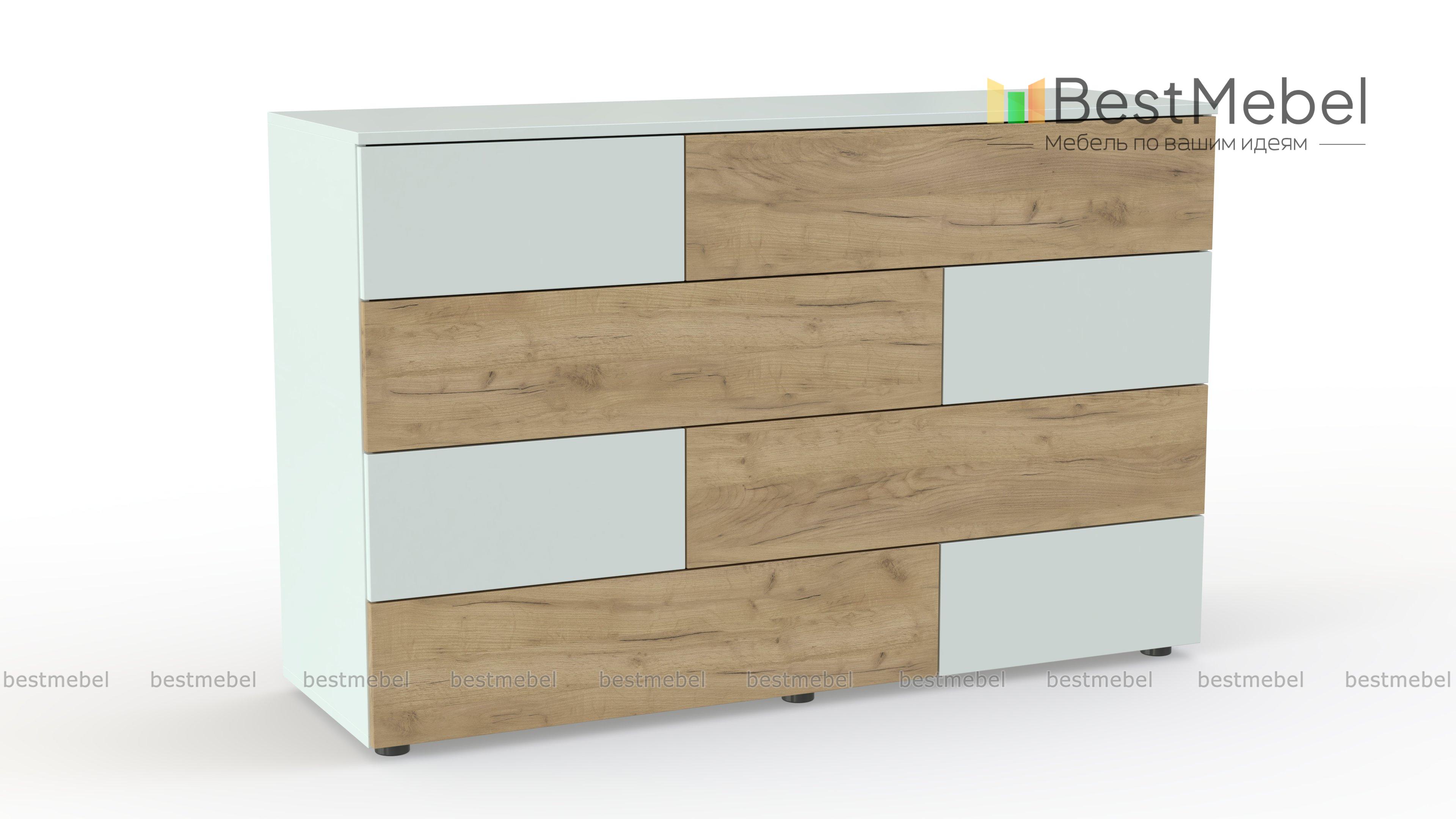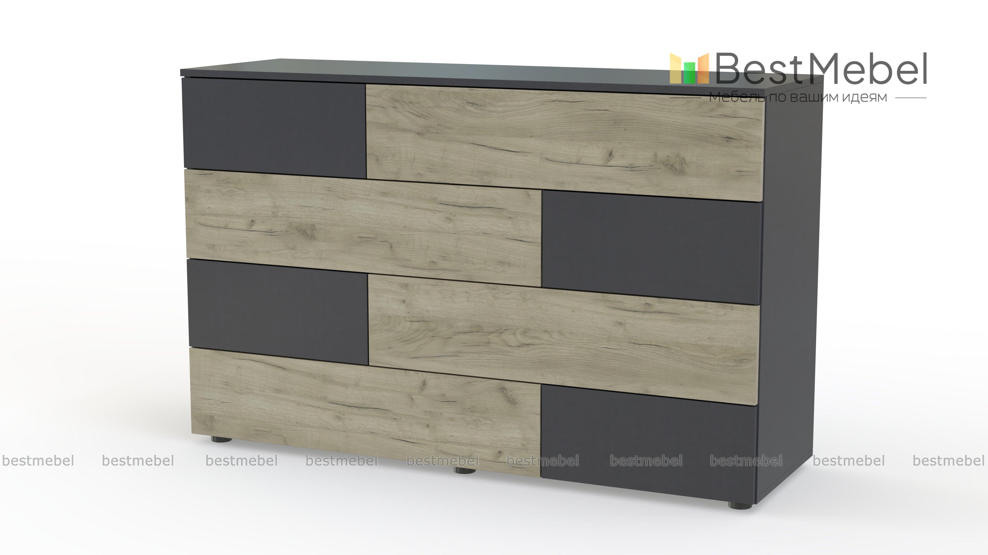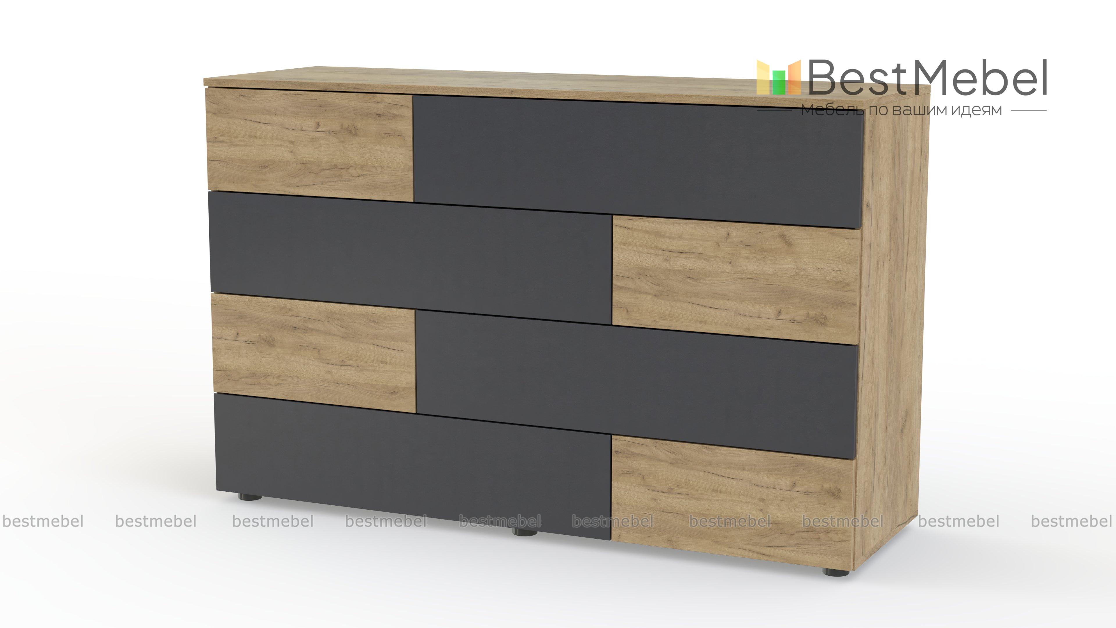 Комод Ежевика 12 BMS с трендовым графичным дизайном дополнит уютный лофт или интерьер в экостиле. На фоне корпуса в теплом крафтовом оттенке выделяются контрастные темные вставки. Расположенные в четыре яруса большие и маленькие выдвижные ящики легко решают проблему хранения текстиля, аксессуаров и множества бытовых мелочей, а на столешнице достаточно места для декора. Купить комод Ежевика 12 BMS с возможностью изготовления по вашим размерам приглашаем в наш интернет-магазин.