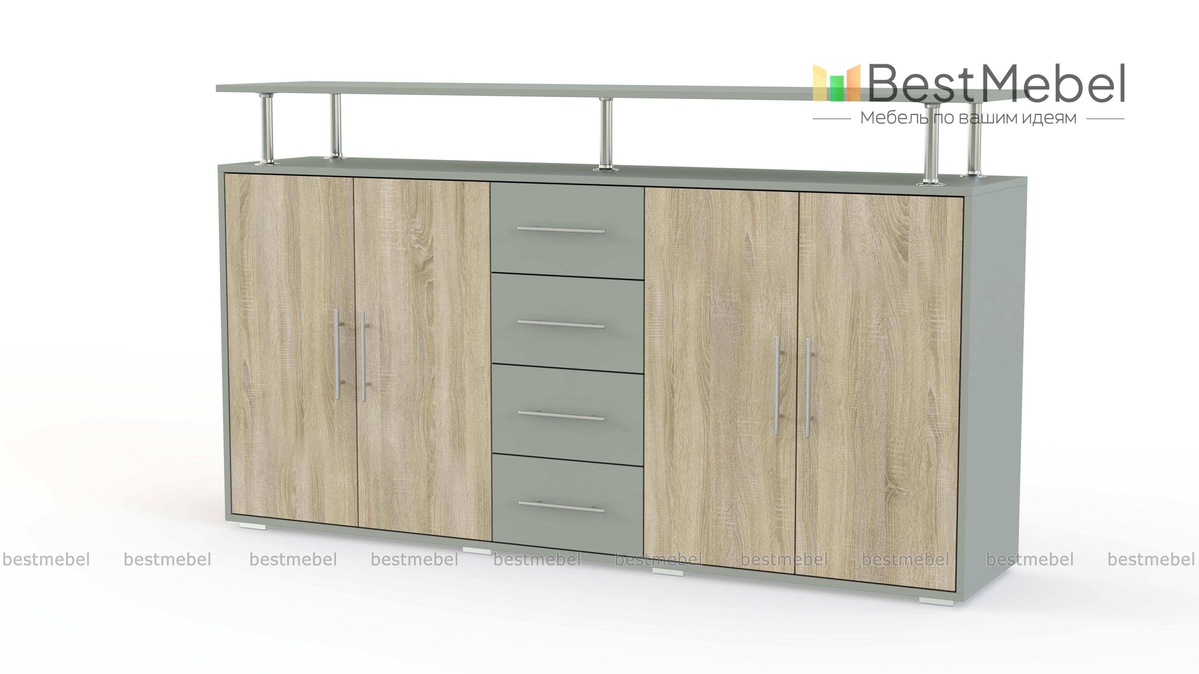 Комод Green ФМ-120 BMS – крупногабаритная горизонтальная модель для просторной современной спальни или гостиной. Конструкция включает в себя два распашных отделения с полками, четыре выдвижных ящика для мелочей и надстройку на хромированных опорах, которая эффектно разместит декоративные предметы. Комод выполнен из экологичных материалов в актуальном сочетании оттенков под массив дерева и матовых однотонных вставок. Купить комод Green ФМ-120 BMS для стильного и функционального интерьера приглашаем в наш интернет-магазин.