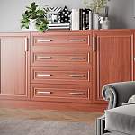 Большой и стильный комод Хельга 4К прекрасно подойдет к современному интерьеру Вашей гостиной. Изящные ручки украшают данную модель и задают основной стиль. Выдвижные ящики очень вместительные и позволяют хранить белье и другие вещи. Боковые отделения с закрытыми дверцами оборудованы полками, куда можно положить постельные принадлежности. На широкую столешницу в данной модели можно поставить телевизор. Купить такой комод недорого и быстро можно в нашем интернет-магазине.