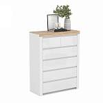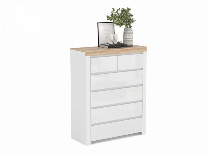 Комод Холден 2 BMS эффектно сочетает в оформлении белоснежный глянец фасада и теплые древесные оттенки столешницы. Высокий и компактный по ширине комод оборудован четырьмя большими и двумя малыми выдвижными ящиками для удобного хранения одежды, аксессуаров и разнообразных мелочей. Минималистичные формы модели подчеркнут широкие фасадные планки и отсутствие лицевой фурнитуры. Купить комод Холден 2 BMS и оптимизировать хранение вам всегда поможет наш интернет-магазин.