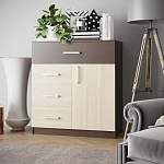 Недорогая, нестандартная модель придется по душе любителям современного стиля. Неординарное расположение отделений и интересное цветовое решение делают модель привлекательной и стильной. Кроме этого, комод Контраст-5 BMS довольно вместительный и функциональный. Он имеет три выдвижных ящика и одно распашное отделение, и большой выдвижной ящик сверху. Все это позволяет удобно разместить большое количество различных вещей. Купить данную мебель можно для спальни, детской или прихожей.