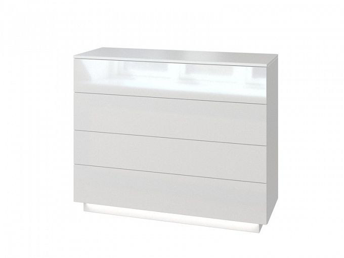 Комод Lina LED BMS – универсальная модель для современных минималистичных интерьеров. Компактный комод легко впишется в интерьер небольшой спальни или гостиной и визуально расширит пространство благодаря белоснежному глянцу фасадов. Для размещения предметов декора, одежды и постельного белья предусмотрены просторная столешница и четыре стандартных выдвижных ящика. Сочетание высокого цоколя и светодиодной подсветки делает конструкцию невесомой. Купить комод Lina LED BMS по доступной цене приглашаем в наш интернет-магазин.