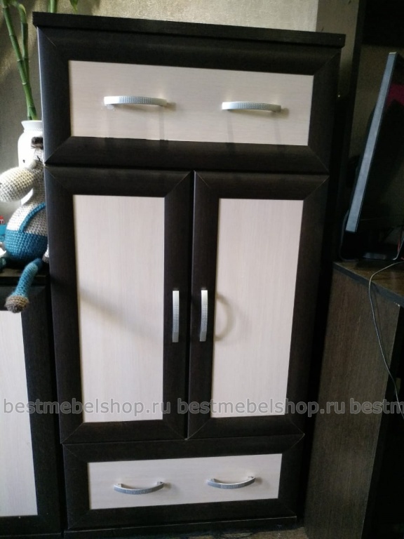 Компактный и стильный комод. Нет ничего лишнего в дизайне. Заказывала в маленькую спальню, поэтому очень был важен размер комода. Эта модель как раз подошла. Благодаря большому выбору цветов на сайте я легко подобрала нужный мне цвет корпуса. Когда договаривалась о доставке, попросила, чтобы не привозили слишком рано. Молодцы, доставили к обеду. Очень понравилось обслуживание и комод хорошего качества.