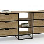 Комод Николь 12 BMS – широкий и вместительный, выполнен в стиле лофт и органично вписывается в интерьер современной квартиры. Удобная система хранения включает в себя шесть выдвижных ящиков, разделенных открытыми полками. Корпус из ламинированной плиты с имитацией массива дерева располагается на прочном металлокаркасе, ящики оснащены трапециевидными вырезными ручками. Купить комод Николь 12 BMS вы сможете в нашем интернет-магазине, подобрав цвет и размеры.