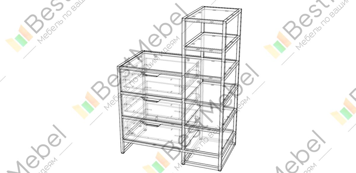 Комод Николь 13 BMS, оборудованный тремя выдвижными ящиками и совмещенный со стеллажом, позволит разместить всевозможные бытовые вещи, рабочие материалы, предметы декора и еще многое другое. Выполненный в стиле лофт, комод органично вписывается в домашний и офисный интерьер. Корпус из ламинированной плиты древесных тонов располагается на прочном контрастном металлокаркасе. Купить комод Николь 13 BMS вы сможете в нашем интернет-магазине, подобрав цвет и размеры.