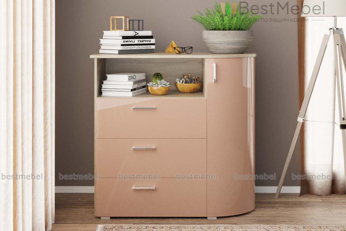 Комод радиусный Этюд 8 BMS задействует угловое пространство благодаря практичной конструкции. Оригинальная модель оборудована нишей, рядом из трех выдвижных ящиков и распашным радиусным отделением с полками. В оформлении комода эффектно скомбинированы древесные тона и пастельный глянец, а плавные линии делают пользование особенно комфортным. Купить комод радиусный Этюд 8 BMS и выгодно использовать особенности планировки вам поможет наш интернет-магазин.