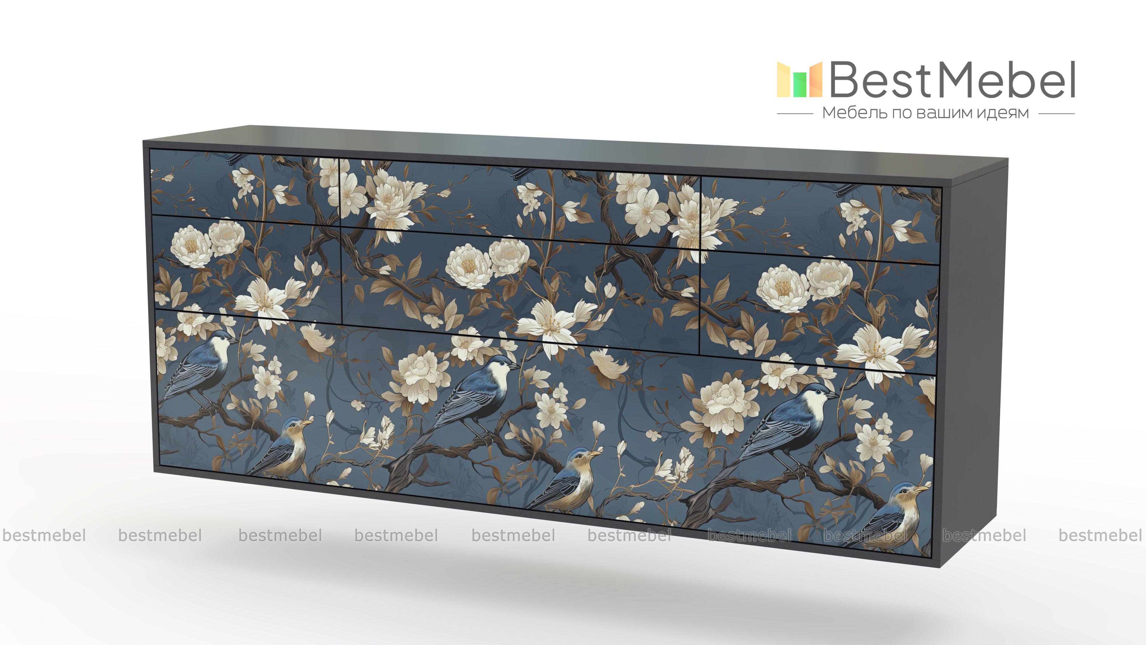 Комод Ральфо 13 BMS гармонично комбинирует модные цвета и фактуры, не требуя дополнительного декора. Корпус подвесной модели выполнен с имитацией массива дерева, а птицы и цветы на фасаде создают изящный узор. Акцентный комод украсит современный спальный интерьер или гостиную и позволит бережно сложить вещи в большие и малые выдвижные ящики. Купить комод Ральфо 13 BMS с возможностью выбора цвета и габаритов приглашаем на сайт нашего интернет-магазина.
