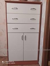 Отличный комод! Высокий сделали, что бы все вещи, которые нужно быстро достать, поместились. Удобно, что есть и выдвижные ящики и большой отсек за дверцами. Очень понравилось, что можно внести пожелания. Я поставила Скругление углов, чтобы не биться об него. Доставили быстро.