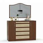 Комод София 12 BMS – это элегантный классический дизайн и удобная система хранения. Оборудованный одним малым и четырьмя большими выдвижными ящиками, а также двумя распашными отделениями с полками, комод разместит как мелкие вещи, так и одежду или домашний текстиль. Выполненная в контрастных древесных тонах, модель дополнена навесным зеркалом с волнообразно вырезанным верхом. Купить комод София 12 BMS для спальни, гостиной или прихожей вы сможете в нашем интернет-магазине.