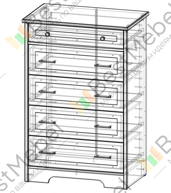 Комод Стенворд № 1 BMS создан для любителей классики и представительных интерьеров. Рамочная фрезеровка фасадов и фигурный вырез цоколя сочетаются с изящной фурнитурой и насыщенной древесной палитрой. Четыре просторных бельевых ящика, оснащенных парными ручками, дополнены одним малым, в котором не потеряются и будут всегда под рукой мелкие вещи. Купить комод Стенворд № 1 BMS для меблировки гостиных, спален и прихожих вы сможете на сайте нашего интернет-магазина.