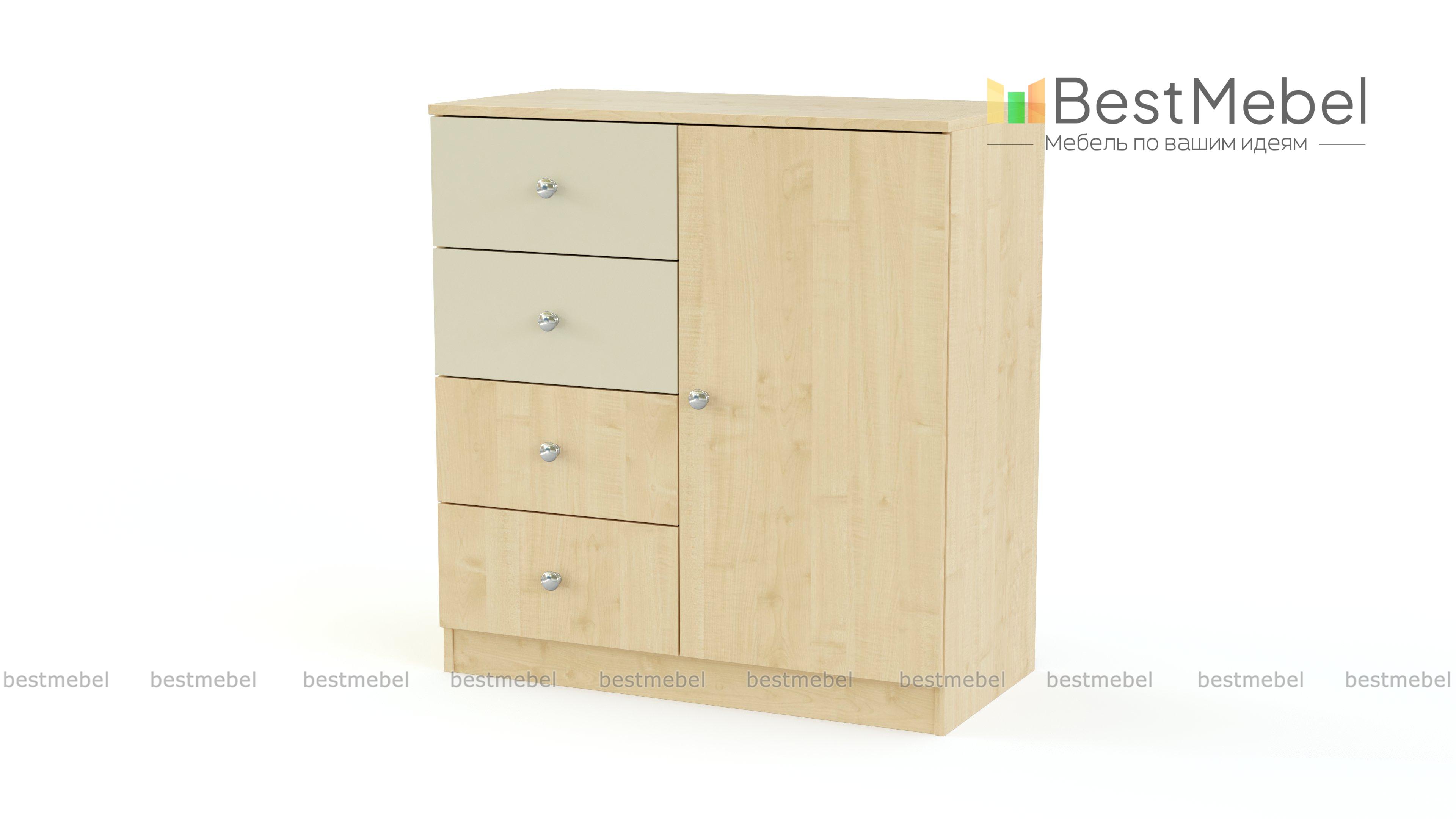 Комод Жили-были BMS предназначен для детской комнаты. Компактные размеры делают модель подходящей для любого помещения. При этом изделие довольно вместительное, имеет боковую тумбочку с полками и четыре выдвижных ящичка для личных вещей. Неординарное цветовое оформление фасада и стильная фурнитура выделяют эту модель из общего ряда. В нашем интернет-магазине Вы можете заказать комод Жили-были BMS с доставкой и недорого.
