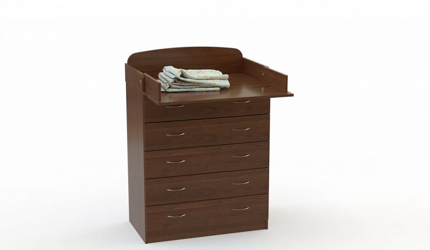 Пеленальный комод Гэри 6 BMS вы сможете использовать для переодевания младенца или как обычный бельевой. Классическая модель выполнена в древесных тонах и оборудована пятью вместительными выдвижными ящиками, оснащенными парными ручками-скобами, для хранения детских вещей. На столешнице комода, ограниченной скругленными бортиками, располагается откидной пеленальный столик. Купить пеленальный комод Гэри 6 BMS приглашаем в наш интернет-магазин с выбором фурнитуры и цвета по каталогу.