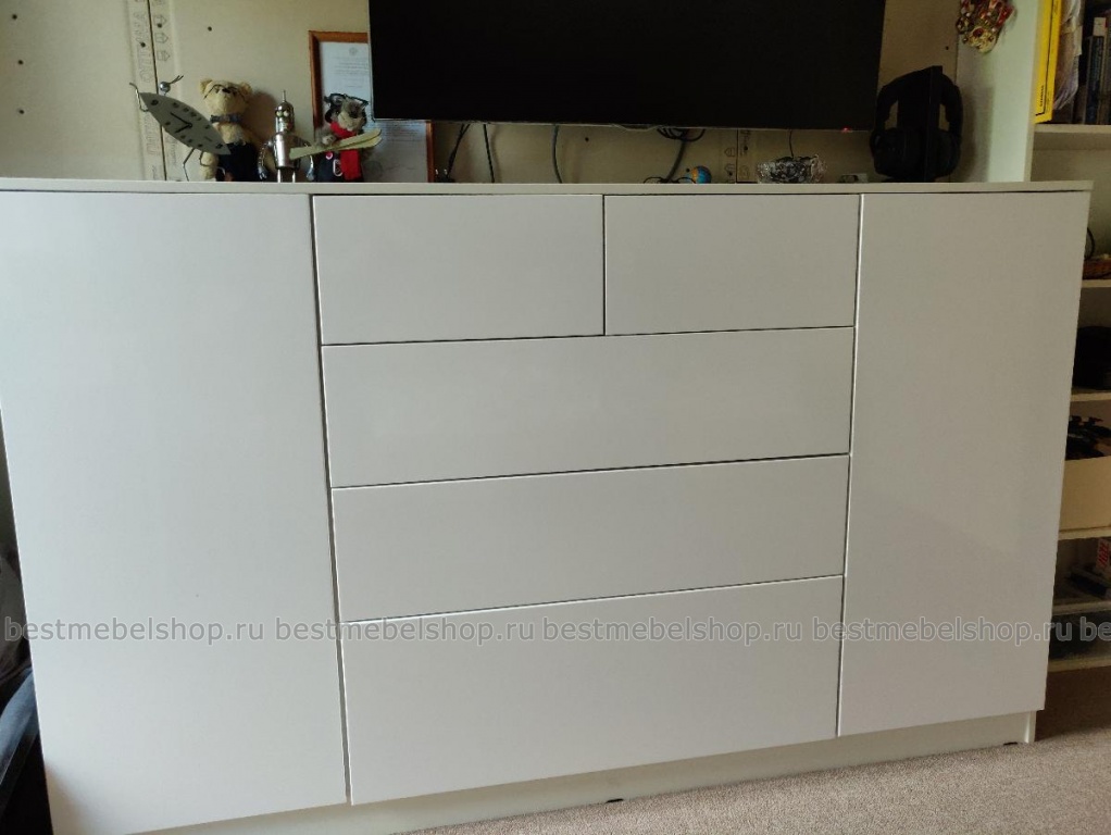 Заказывали такой комод на дачу в спальню, в белом цвете- глянец, по своим размерам. Упаковано было хорошо, дефектов нет, собрали самостоятельно - интуитивно понятно, (зазоры кое-где - результат нашей сборки, исправим)) Качеством вполне довольны. Внешне нравится :)