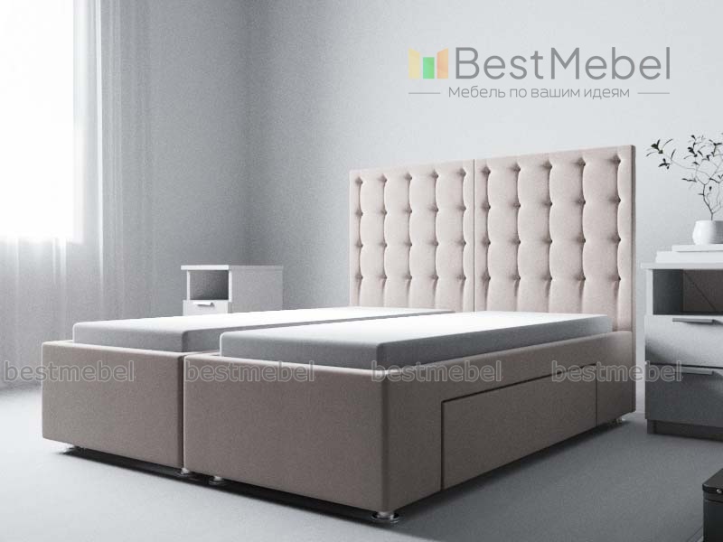 Кровать Адрия BMS – современная кровать-подиум, объединившая два односпальных модуля. Элементы выполнены в мягкой обивке из ткани светлого цвета и гармонично впишутся в актуальные спальные интерьеры. Кровать располагается на устойчивых хромированных опорах, оборудована комфортными спальными местами и высокой спинкой изголовья с декоративной прострочкой. В основании находятся выкатные ящики для постельных принадлежностей. Купить кровать Адрия BMS приглашаем в наш интернет-магазин, подобрав оптимальные параметры.
