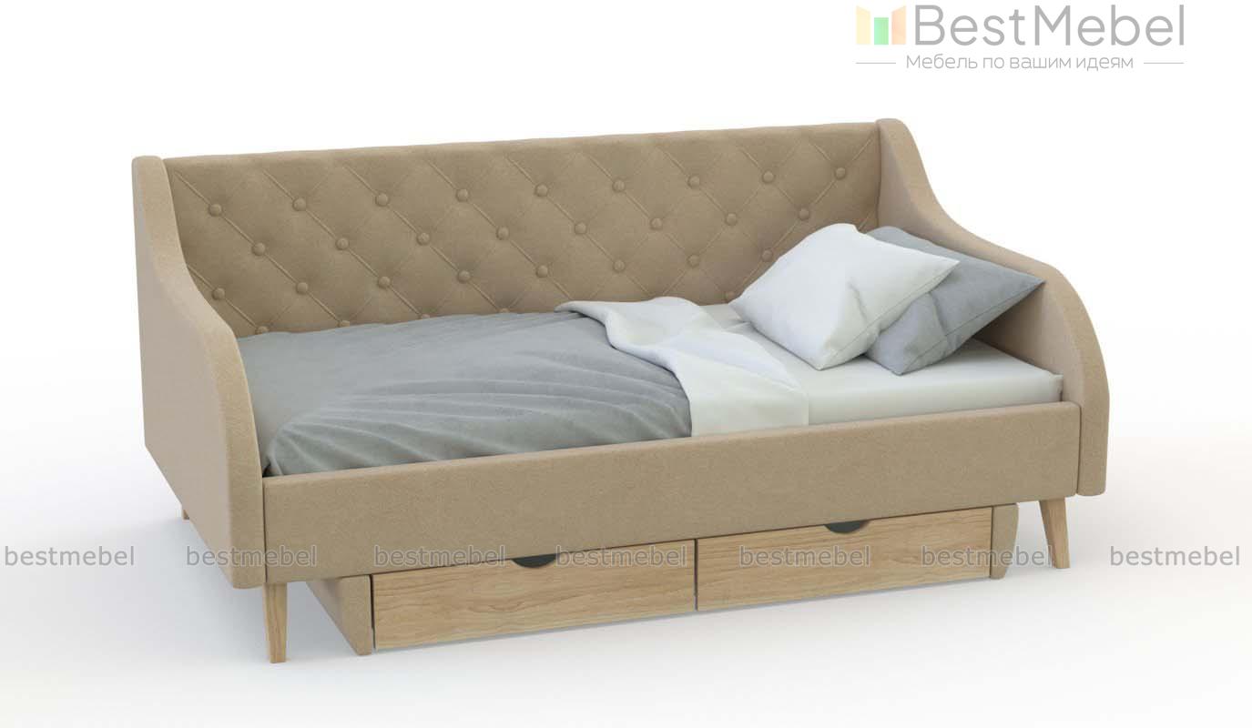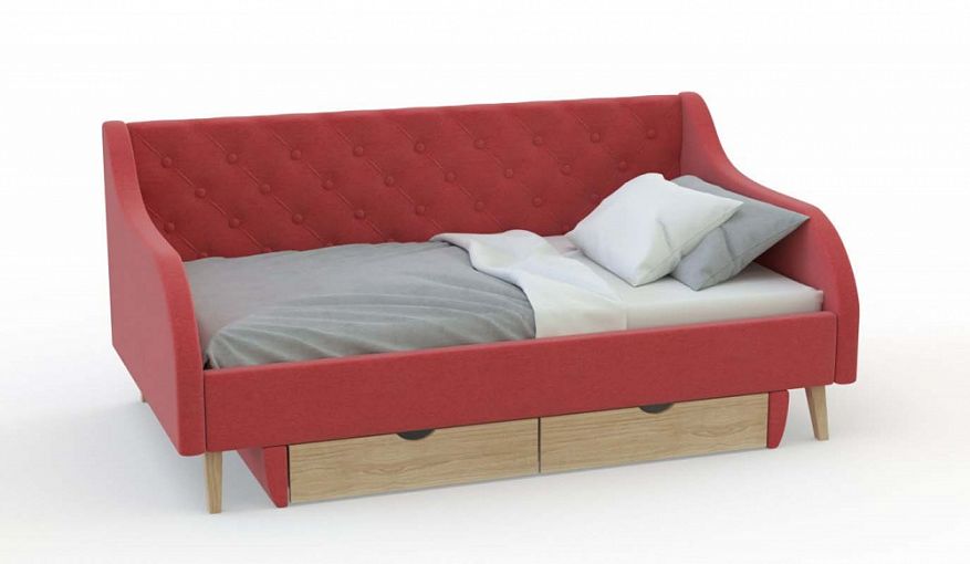 Кровать Лина 16 BMS оборудована плавно изогнутыми подлокотниками, переходящими в высокую спинку. Кровать-диван в мягкой обивке с каретной стяжкой прекрасно подходит для дневного отдыха и сна и станет альтернативой классическим моделям в небольших помещениях. Высокие скошенные ножки в скандинавском стиле придают конструкции устойчивость и легкость, а для хранения постельных принадлежностей, одежды и игрушек предусмотрены два выкатных ящика. Купить кровать Лина 16 BMS с возможностью выбора цвета и размеров приглашаем в наш интернет-магазин.