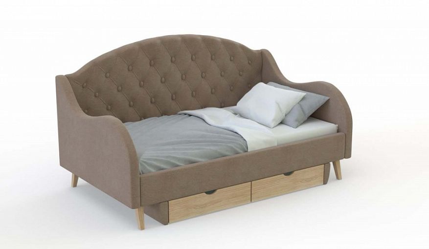 Кровать Лина 20 BMS с изящно вырезанными подлокотниками и спинкой подходит для дневного отдыха и сна. Уютная модель в мягкой обивке с пуговицами украсит интерьер небольшой гостиной или детской и сэкономит полезную площадь. Высокие скошенные ножки в скандинавском стиле придают конструкции устойчивость и легкость, а два выкатных ящика решат проблему хранения постельных принадлежностей, одежды или игрушек. Купить кровать Лина 20 BMS вы сможете в нашем интернет-магазине, подобрав цветовое решение.