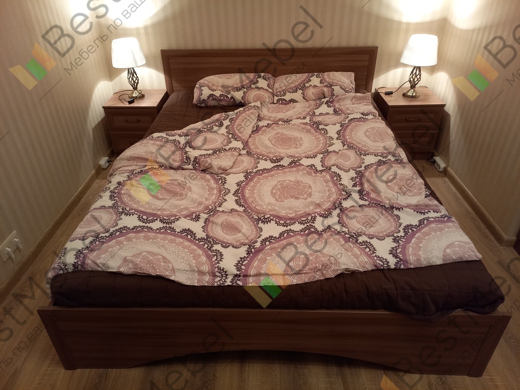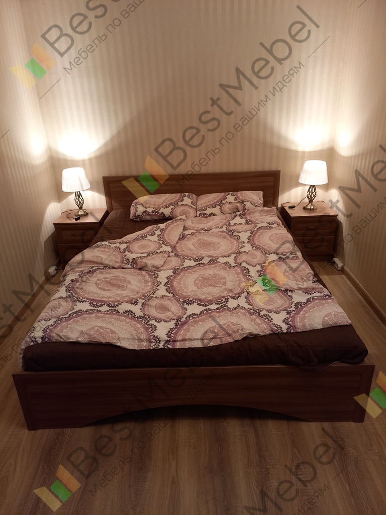 Приобрёл кровать (Заказ №820254). Дополнительно к комплекту той же серии: шкаф, комод и тумбы. Кровать мне выполнили на заказ - 160 х 220. У меня большой рост, теперь помещаюсь полностью и ещё остаётся пространство. Кровать массивная, не шатается, не скрипит. Также дополнил базовый вариант наличниками, с которыми смотрится ещё лучше.