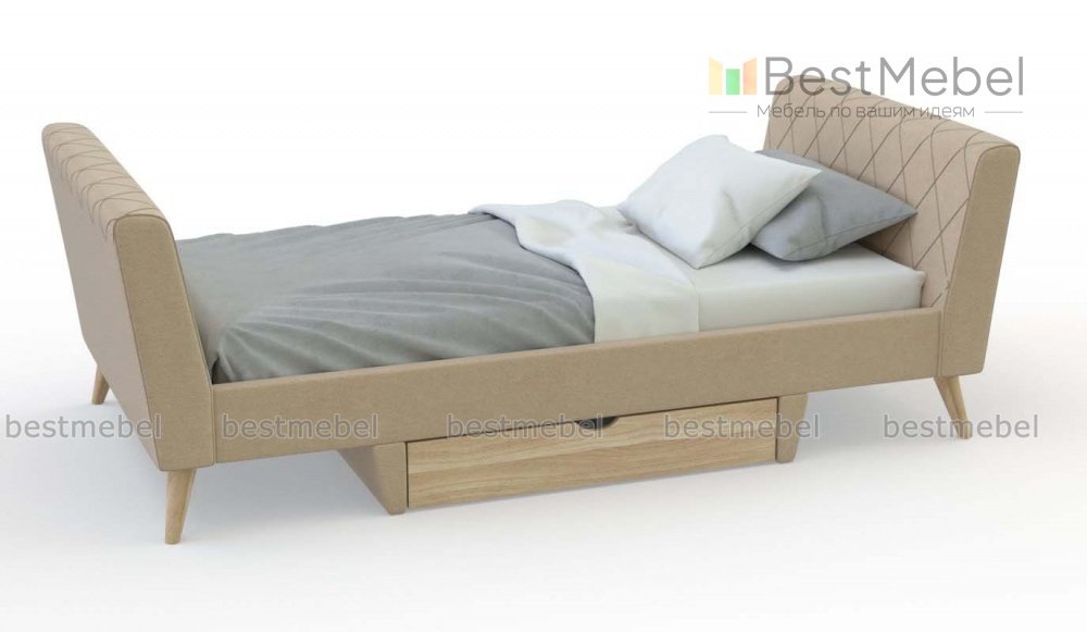 Кровать Пион 13 BMS с двумя чуть скошенными спинками напоминает кушетку и может использоваться для сна и дневного отдыха. Благодаря обивке из износостойкого текстиля кровать проста в уходе, а ромбовидная прострочка придает ей особенно изящный вид. Высокие скошенные ножки в скандинавском стиле делают конструкцию устойчивой и в то же время визуально легкой, для хранения постельного белья под кроватью предусмотрен выкатной ящик. Купить кровать Пион 13 BMS вы сможете в нашем интернет-магазине, подобрав размеры и интересный вариант обивки.