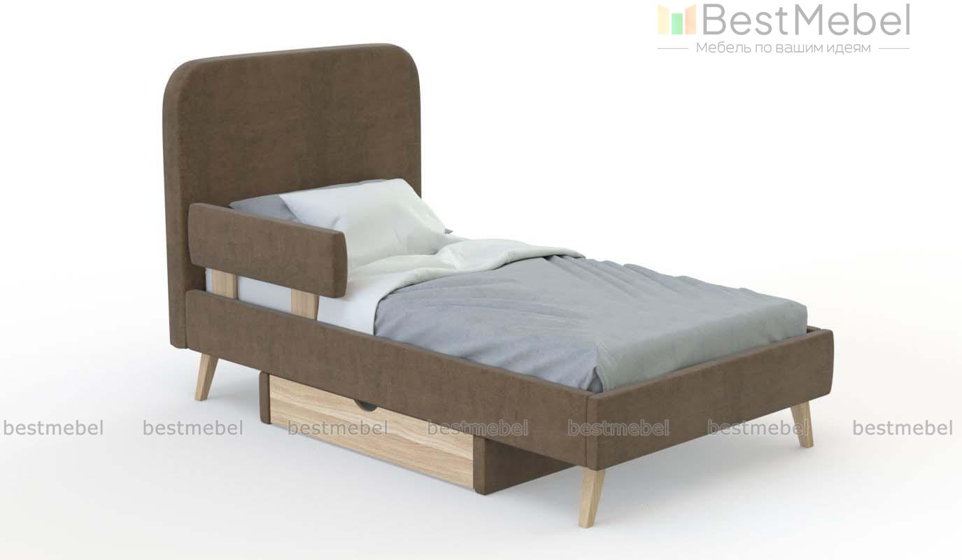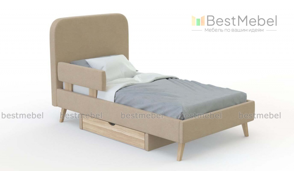 Кровать Прага 21 BMS поможет вам обустроить уютную детскую в стиле сканди, мид сенчури или ретро. Просторное спальное место без спинки в изножье дополнено высоким скругленным изголовьем, которое позволяет удобно сидеть в кровати, и защитным бортиком. Комфортная и безопасная благодаря мягкой текстильной обивке, кровать располагается на устойчивых скошенных ножках и оборудована выкатным бельевым ящиком. Купить кровать Прага 21 BMS с выбором цвета и размеров вы сможете в нашем интернет-магазине.
