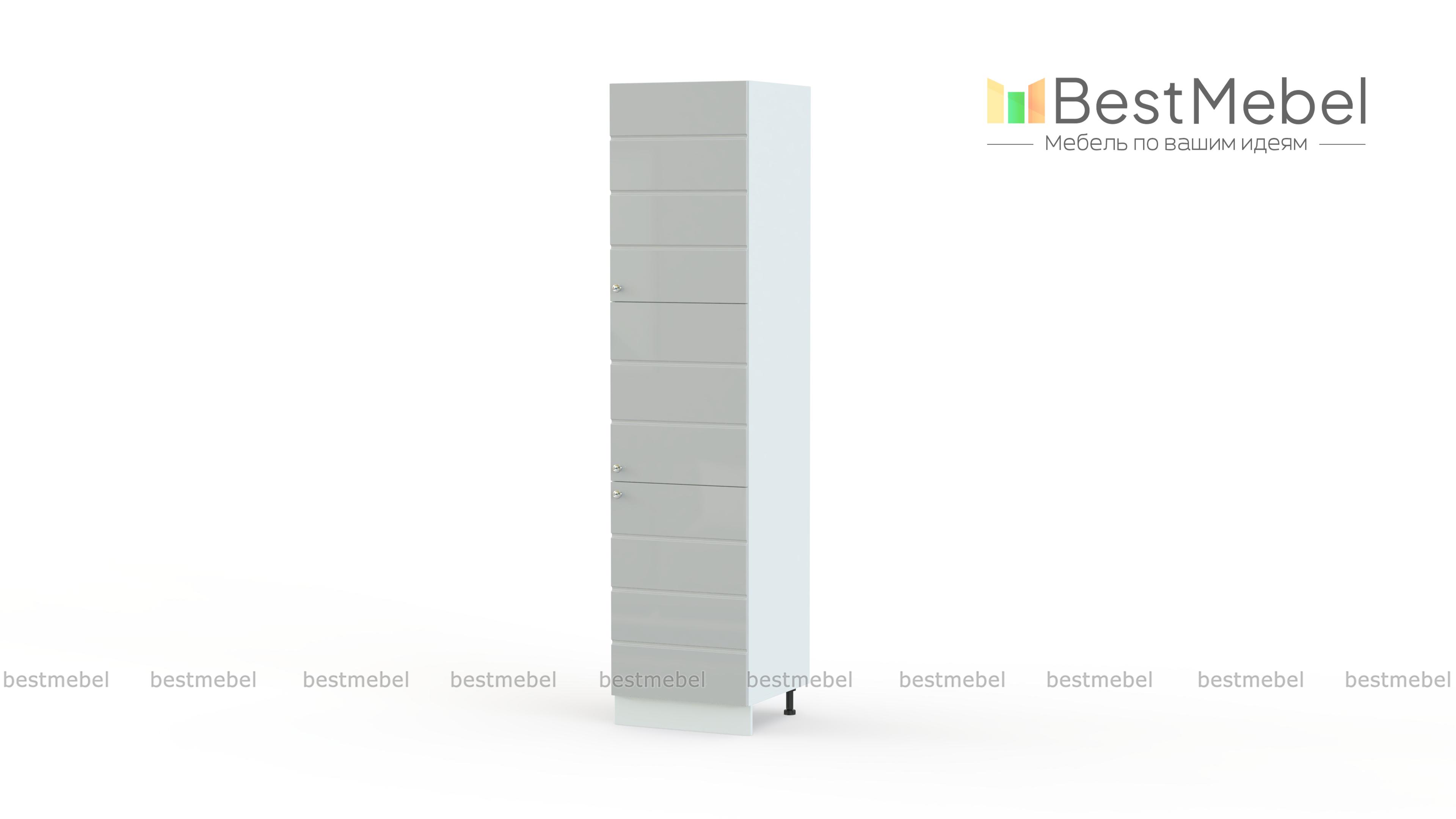 Пенал Квадро BMS может использоваться и самостоятельно, и как часть комплекта. Компактная, но вместительная за счет высоты, модель оборудована тремя распашными дверцами и просторными полками, на которых можно удобно разместить все необходимое на кухне – от продуктов до разнообразной утвари. Фасад с матовой текстурой выполнен в актуальном оттенке и декорирован стильными круглыми ручками. Купить колонну Квадро BMS для современного кухонного интерьера приглашаем по демократичной цене в наш интернет-магазин.