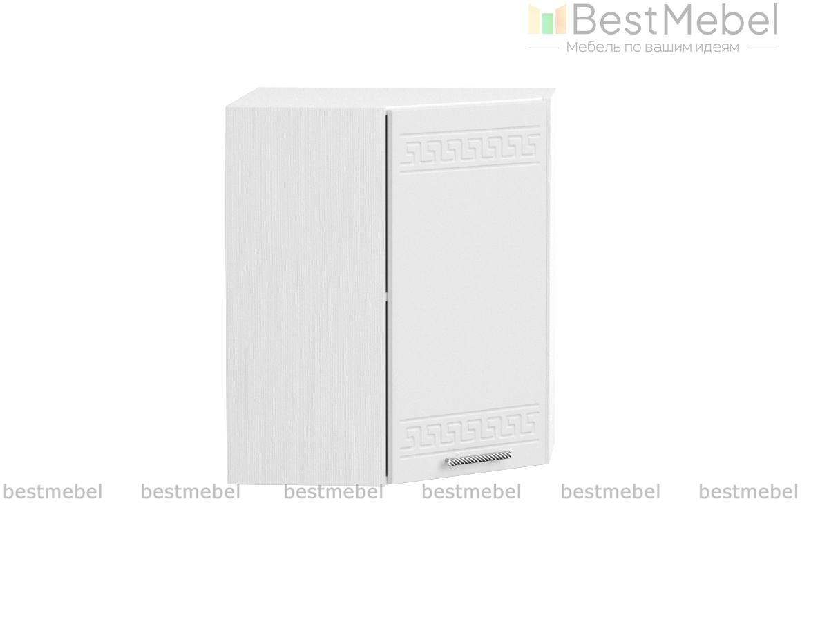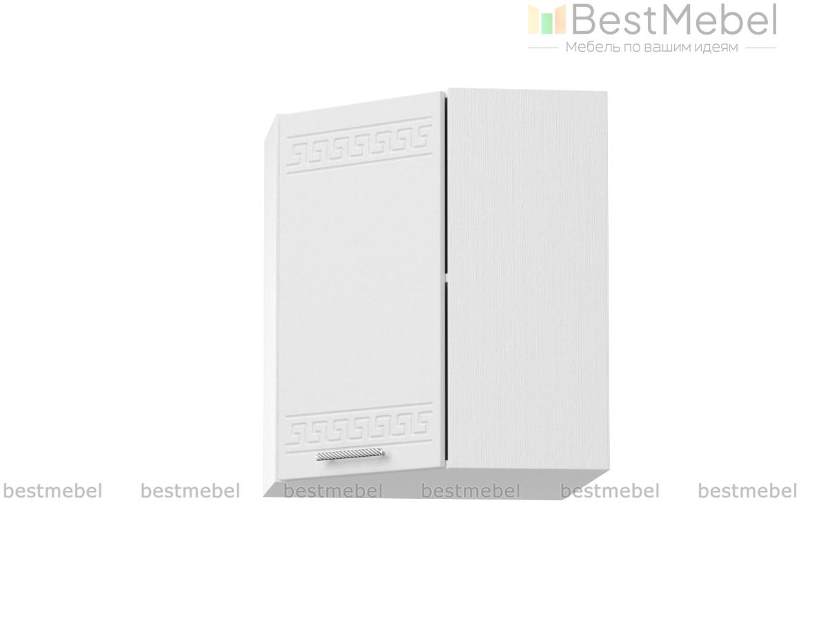 Шкаф навесной угловой 590 Греция BMS незаменим в комплекте Г-образной формы и служит для соединения модулей верхнего ряда. Компактный внешне, шкаф выгодно использует угловое пространство. За глухой распашной дверцей – просторное отделение с полкой для хранения кухонных принадлежностей. Фасад, выполненный в белом матовом оттенке, украшен орнаментом и отличается устойчивостью к влаге, механическим повреждениям и простотой ухода. Купить шкаф навесной угловой 590 Греция BMS по демократичной цене вы сможете в нашем интернет-магазине.