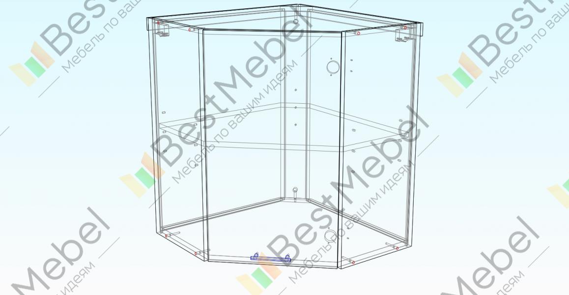 Шкаф навесной угловой Аура BMS играет роль стыковочного элемента между модулями левого и правого крыла в кухонном гарнитуре. Шкаф в форме трапеции эффективно использует обычно незадействованное пространство и отличается редкой вместительностью. За распашной дверцей располагается просторное отделение с полкой, в котором вы сможете разместить как продукты, так и посуду и разнообразные кухонные принадлежности. Купить шкаф навесной угловой Аура BMS, незаменимый в Г-образном комплекте, вы сможете в нашем интернет-магазине.
