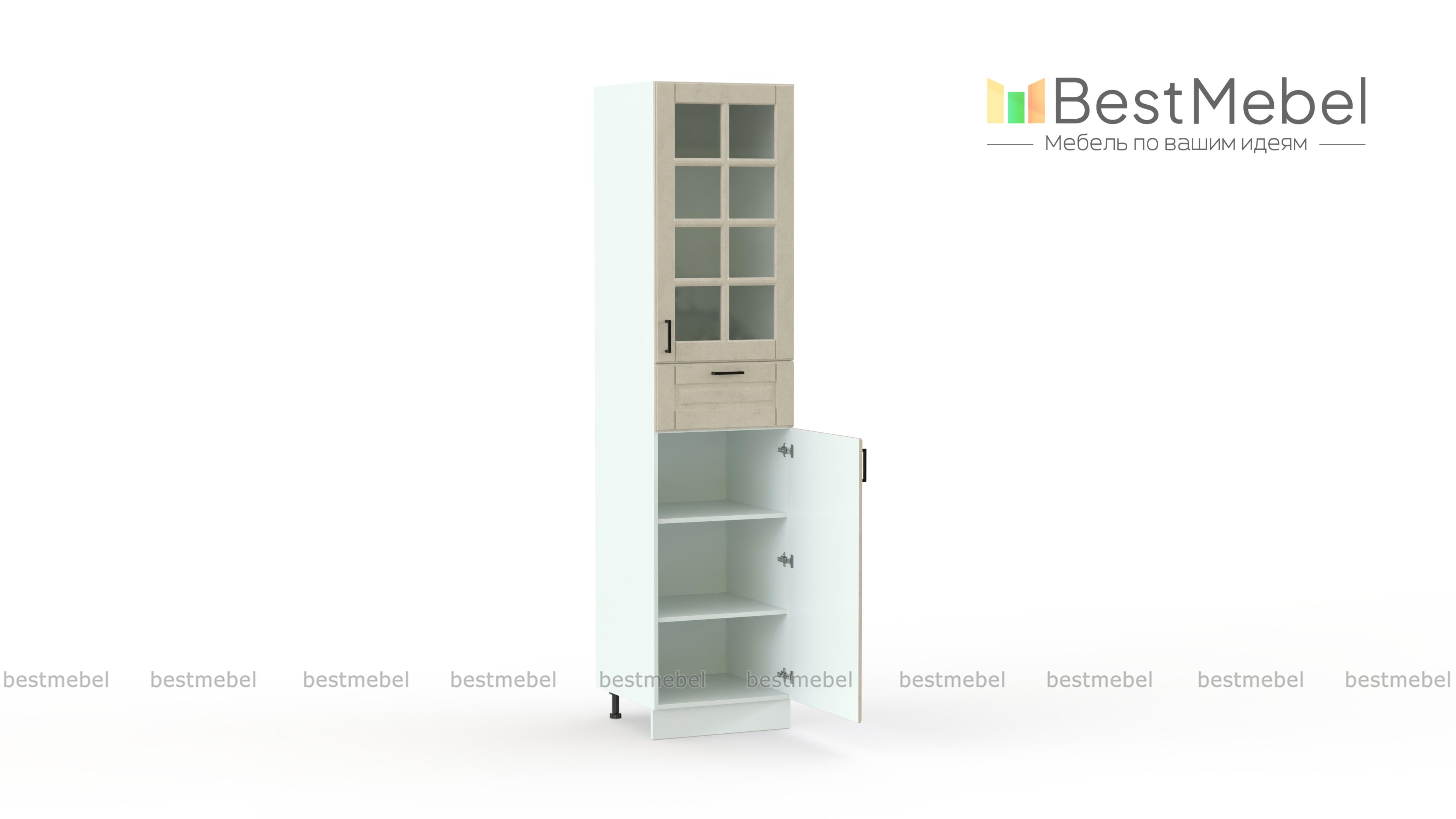 Шкаф-пенал со стеклом Парма BMS сочетает в себе практичность и эстетику современной классики. Фасады нижнего распашного отделения, оборудованного полками, и выдвижного ящика имеют рамочное оформление, а витринная секция украшена декоративной решеткой. Конструкция пенала прекрасно подходит для размещения красивой посуды и декора, хранения кухонной утвари и продуктов. Купить шкаф-пенал со стеклом Парма BMS вы сможете в нашем интернет-магазине с выбором размеров, цвета и фурнитуры.