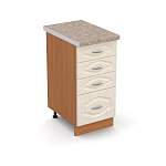 Шкаф-стол с 4-мя ящиками Рондо BMS добавит функциональности модульному комплекту для кухни. Классическая модель идеально подходит для хранения мелочей – три малых выдвижных ящика и один большой позволят держать все нужное под рукой и экономят время. Фасады ящиков декорированы легкой фрезеровкой и дополнены практичными ручками-скобами. Купить шкаф-стол с 4-мя ящиками Рондо BMS, подобрав подходящее цветовое решение, вы сможете недорого в нашем интернет-магазине.