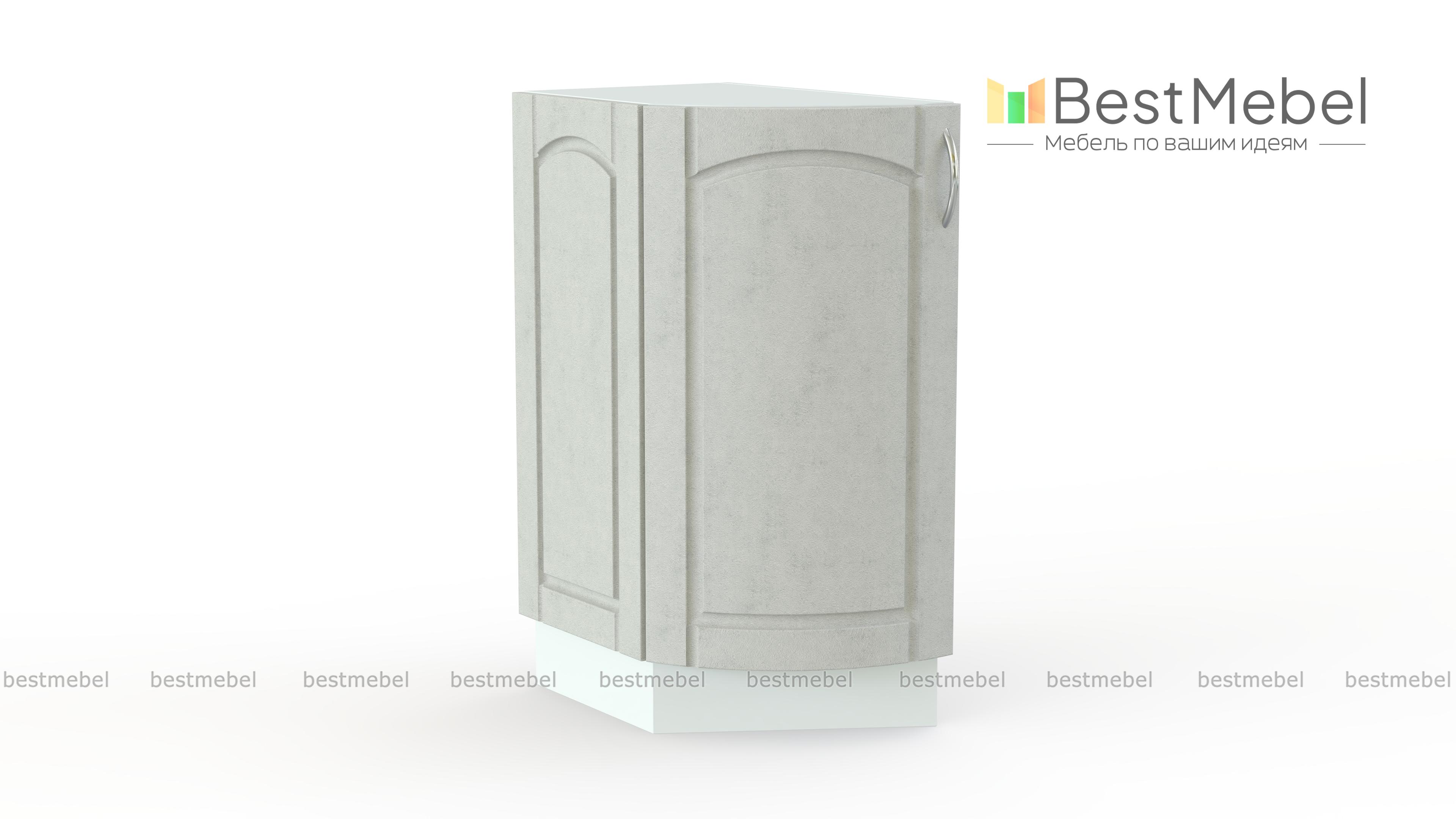 Стол торцевой радиусный Трапеза BMS предназначен для завершения нижнего ряда модульного комплекта для кухни. Оригинальная деталь позволит сделать всю композицию более эффектной и визуальной легкой, а также безопасно сгладит острые углы. Шкаф оборудован распашной дверцей с гнутым фасадом и внутренним отделением, удобным для хранения разнообразных кухонных мелочей. Купить стол торцевой радиусный Трапеза BMS и дополнить классический гарнитур стильным элементом вам поможет наш интернет-магазин.