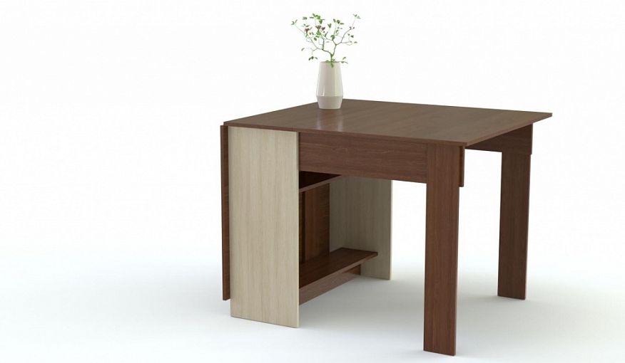 Кухонный стол Нико 1 BMS, выполненный в сочетании темно-коричневого корпуса со светлыми боковинами, станет отличным выбором для небольшой современной кухни. Компактная тумба с поперечными перекладинами за минуту превращается в столик на двоих или полноценный обеденный вариант при помощи складных створок и опор. Надежность конструкции и износостойкие материалы гарантируют модели долгий срок службы и эстетичный вид. Купить кухонный стол Нико 1 BMS приглашаем в наш интернет-магазин.
