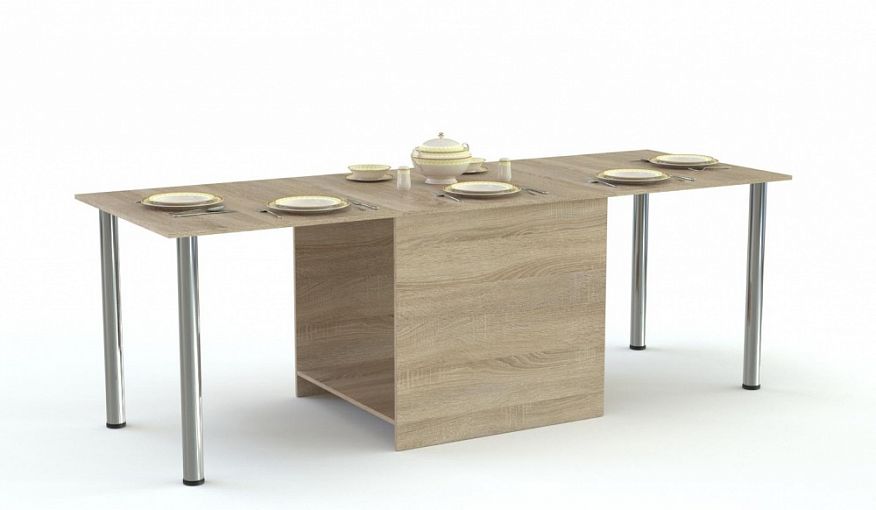 Кухонный стол Прайм 1 BMS в сложенном виде представляет собой компактную тумбу, которая может служить дополнительным местом хранения и подставкой для предметов декора. При помощи раскладных боковин и регулируемых хромированных ножек модель легко трансформируется в небольшой столик или полноценный вариант для семейного обеда. Лаконичный дизайн и возможность выбора цветового решения позволят легко вписать стол в интерьер. Купить кухонный стол Прайм 1 BMS вы сможете недорого на сайте нашего интернет-магазина.