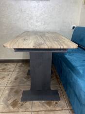 Извените! Оказалось всё дело в полу, неровный пол, переставили на кафель, стол стоит как вкопанный. Будем думать, что делать с полом. Прошу прощения и огромное вам спасибо!