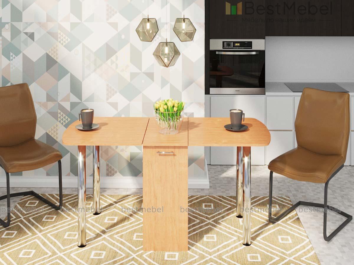 Многофункциональная модель СП-07.1 BMS придется по душе поклонникам универсальности. В сложенном виде конструкция представляет собой функциональную тумбу с вместительным посудным ящиком с откидной крышкой. Механизм трансформации «книжка» превратит тумбу в компактный или просторный обеденный стол. Устойчивость столу обеспечивает опора в центральной части и четыре металлические ножки. Возможность подбора расцветки в нашем интернет-магазине позволит легко вписать стол в интерьер.