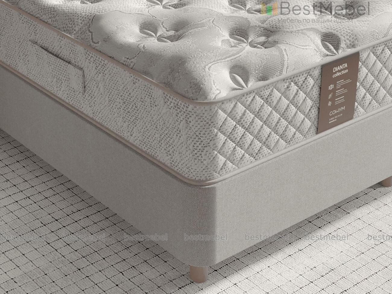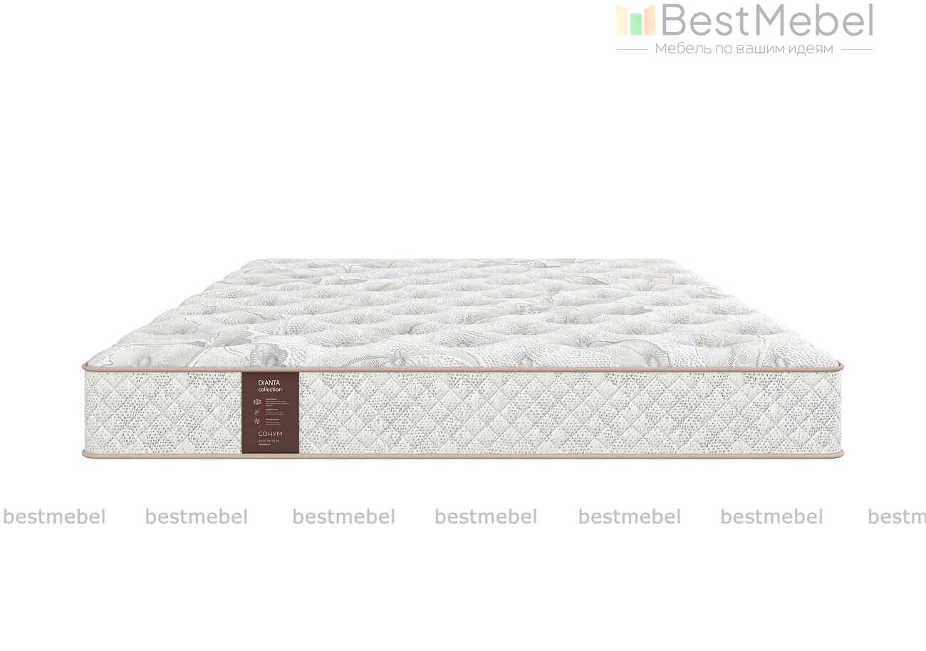 Матрас Dianta Soft – самая мягкая модель серии благодаря использованию нежной и эластичной мемори-пены. Блок независимых пружин ChessPocket выдерживает большую нагрузку и обеспечивает равномерную поддержку телу спящего. Белый войлок надежно изолирует внутренние слои, продлевая срок службы матраса, а трикотажный чехол с объемной декоративной простежкой на синтепоне создает мягкое, приятное на ощупь и долговечное покрытие. Купить матрас Dianta Soft вы сможете на сайте нашего интернет-магазина с выбором оптимальных размеров.
