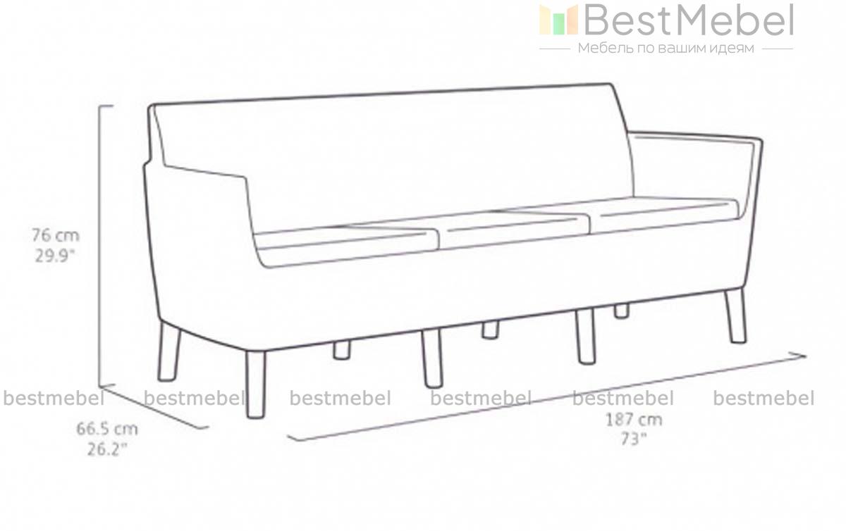 Комплект Salemo 3 seater set выполнен из прочного пластика и отличается эргономичным современным дизайном. Поверхности предметов, устойчивые к неблагоприятным погодным условиям, просты в уходе, не выгорают и не деформируются со временем. Комплект включает в себя все необходимое для комфортного отдыха в саду: два кресла 79х66.5х76 см, столик с отделением для хранения небольших вещей 76х56.5х41.5 см и трехместный диван 187х66.5х76 см. Купить комплект Salemo 3 seater set для оформления удобной и стильной зоны отдыха вы сможете в нашем интернет-магазине.