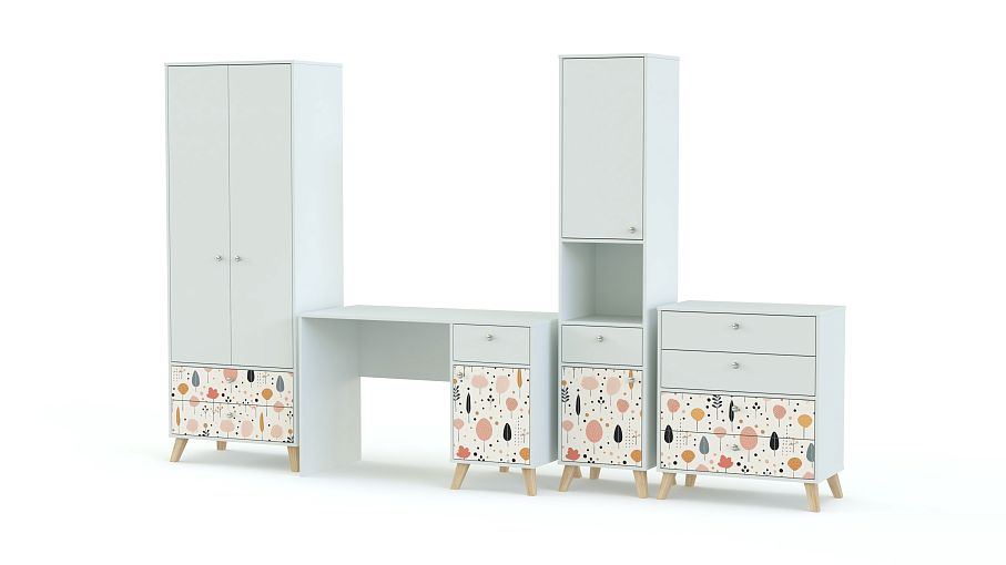 Детская комната Эльза 7 BMS — это визуально легкая современная композиция с рабочей зоной и продуманной системой хранения. Даже в небольшую комнату удачно впишутся письменный столик с тумбой, узкий книжный стеллаж, бельевой комод и двухдверный платяной шкаф. Высокие ножки делают интерьер более «воздушным», а светлая гамма с пастельным декором-фотопечатью создает комфортную атмосферу. Купить детскую комнату Эльза 7 BMS, изготовленную по индивидуальным размерам, вы сможете в нашем интернет-магазине.